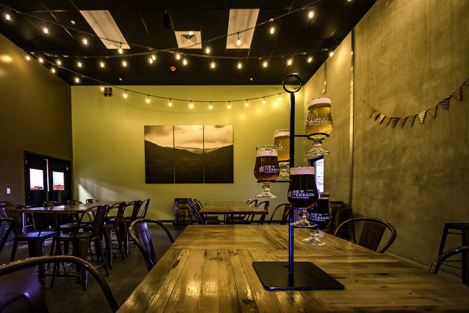 Like a candelabra or a cupcake holder, these elegant flight holders are all about looks. Luckily, the beers at New Terrain hold their own against the dramatic presentation.