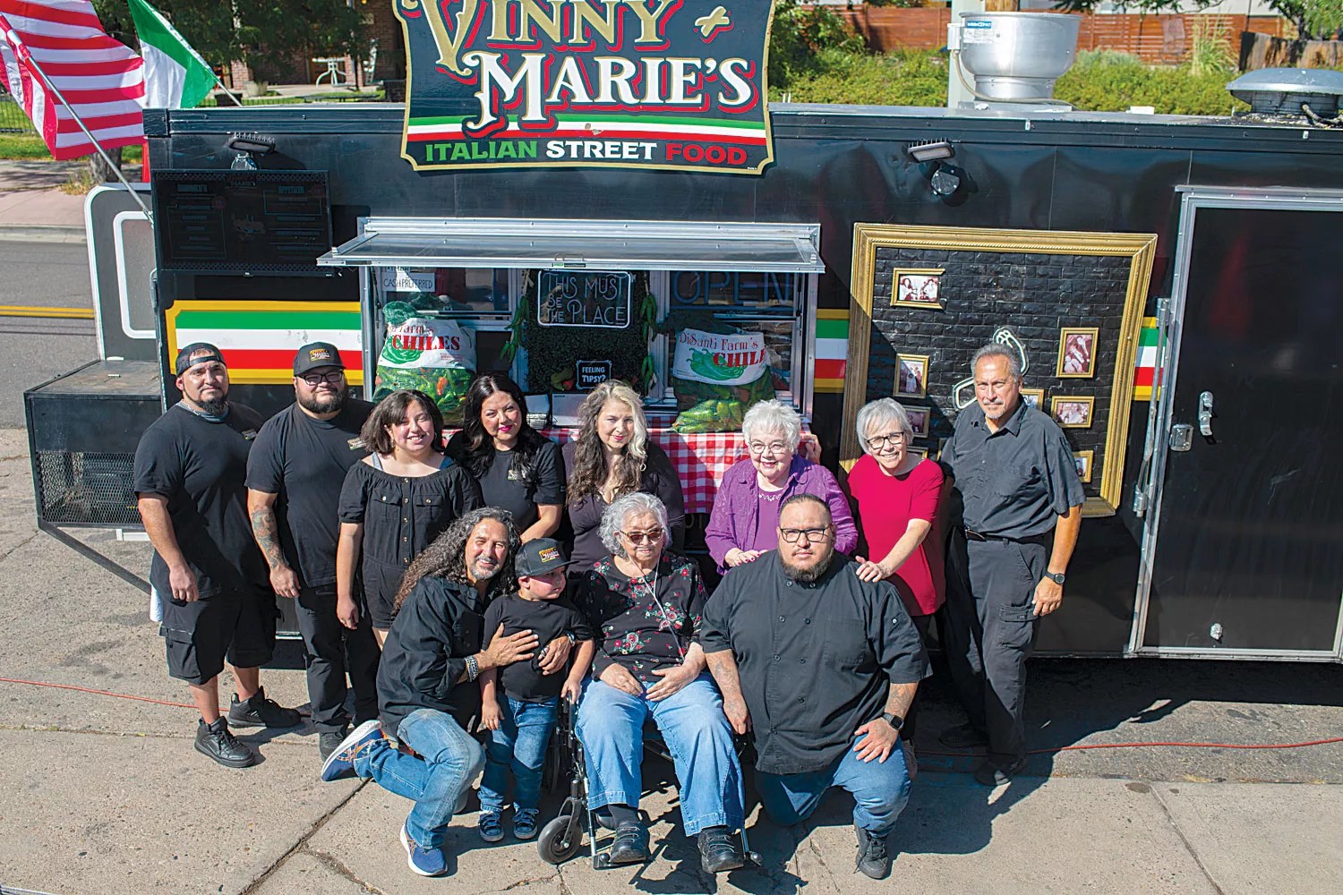 Members of the extended Mosco family in front of the Vinny & Marie’s Italian Street Food truck.