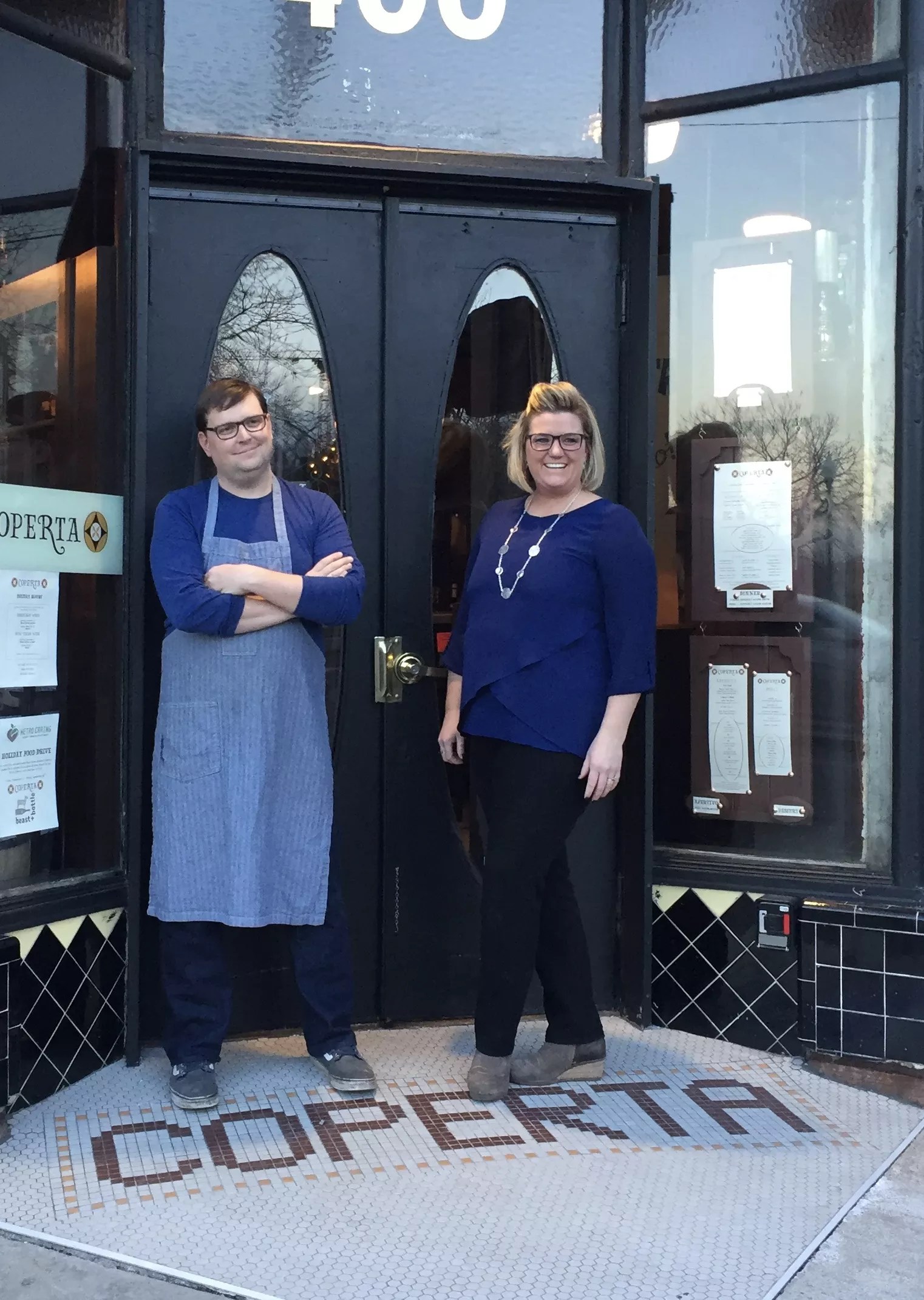 Aileen says that hospitality will be more important than ever once both restaurants are open, because masks, partitions and limited visits to each table will make it tough to connect with customers. “One of the things we’re going to focus on is the genuine care,” she explains. “There are going to be a few things we’ll have to change: a new POS system, QR codes for menus, easier payment – and we’re not going to be able to do as many ‘touches.'” Paul C. Reilly and Aileen V. Reilly, unmasked – at least before customers arrive. Courtesy of Coperta