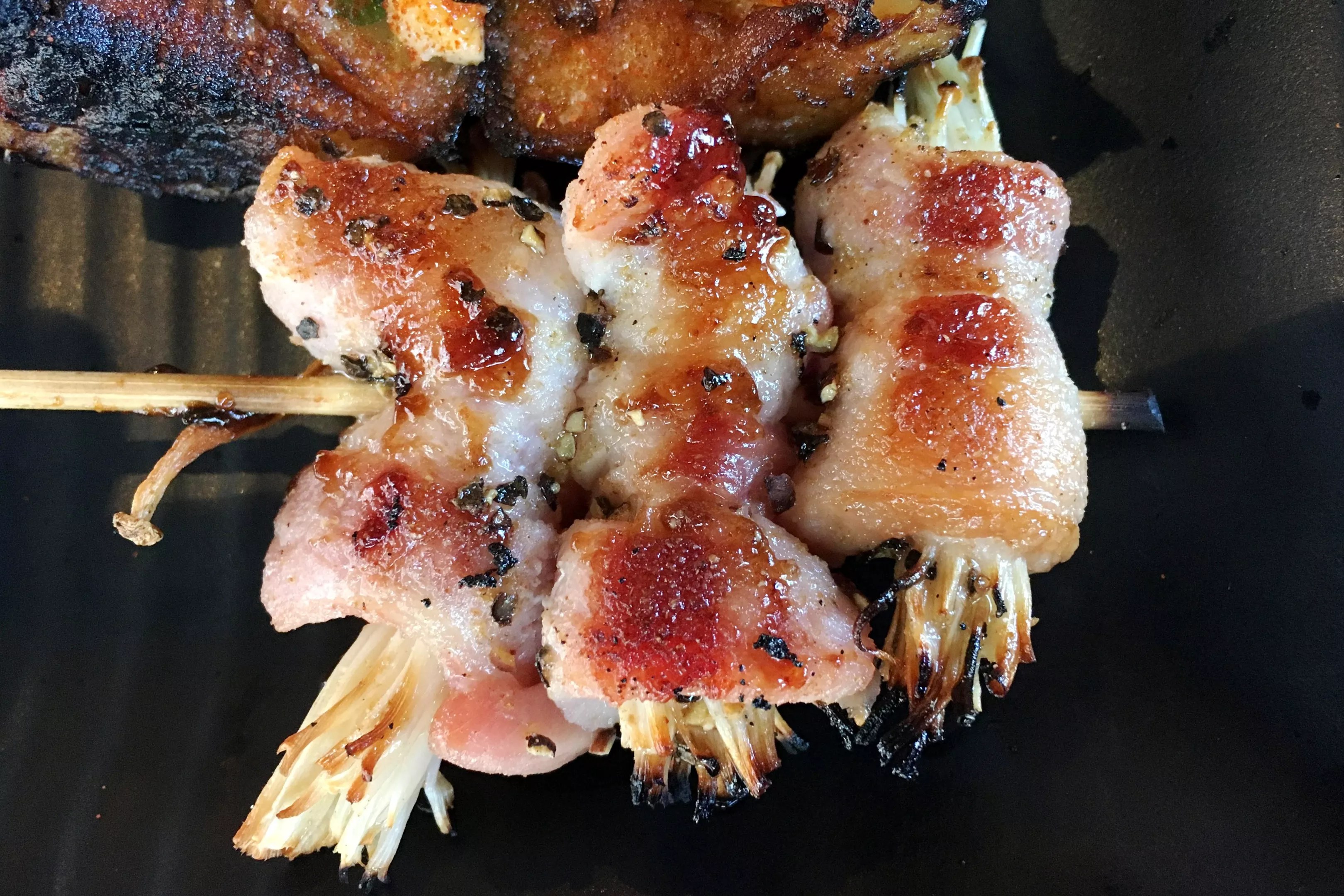 Skewers are also available, offering an assortment of grilled meats and veggies brushed with salty-sweet sauce that includes pork belly, Chinese sausage, sweet potato, and bacon-wrapped leeks or enoki mushrooms, to name a few. Priced mostly around $2 to $4, they’re an easy way to fill up with a wide variety of bites. Don’t miss the grilled eggplant, which isn’t really a skewer, but rather a halved Japanese eggplant (the long, skinny kind) with the stem left on for a handy handle, dusted with seasonings and scored so that the flavors soak deep into the eggplant.