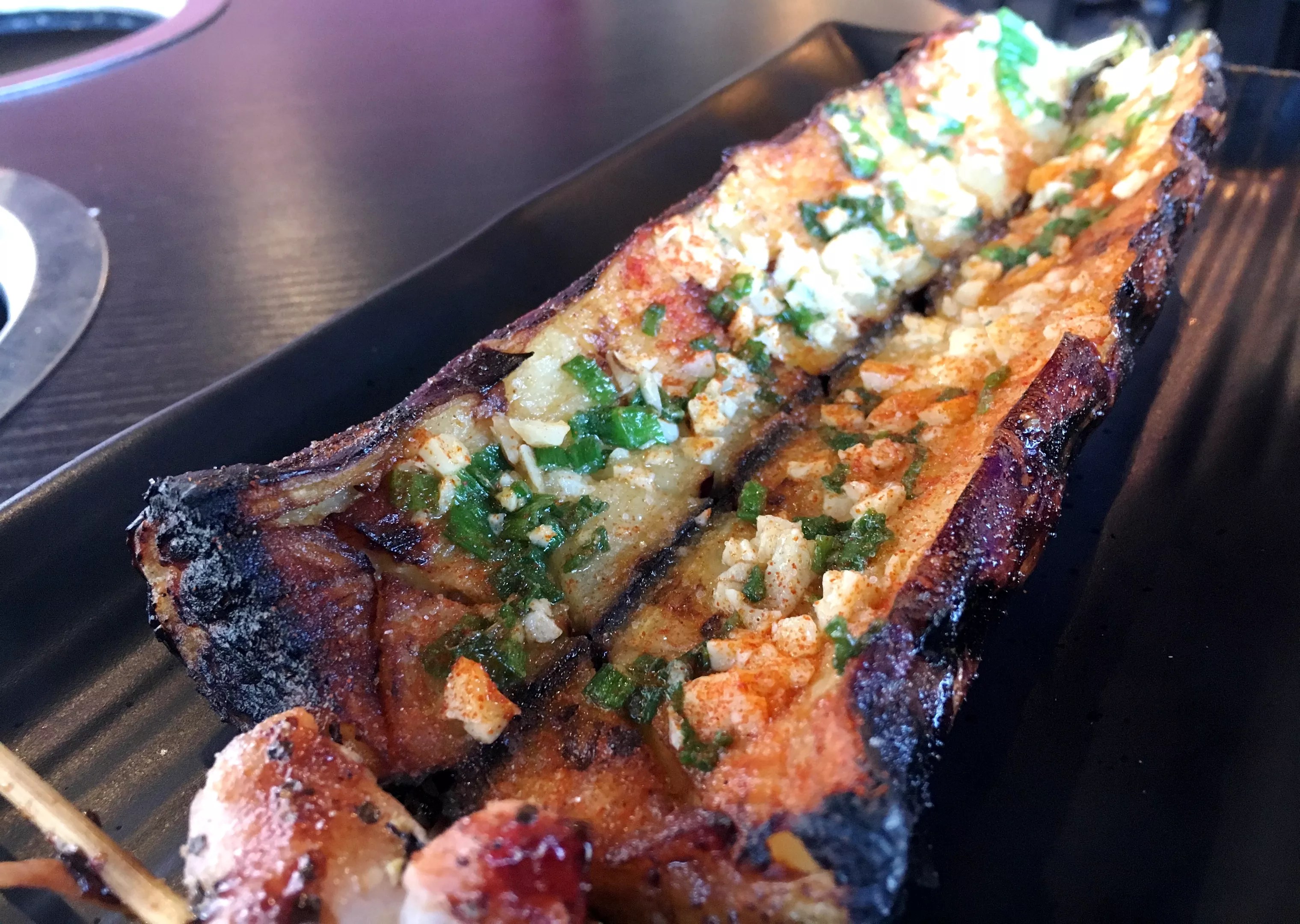 Grilled eggplant is one of the best skewer options, even if it’s not served on a skewer.