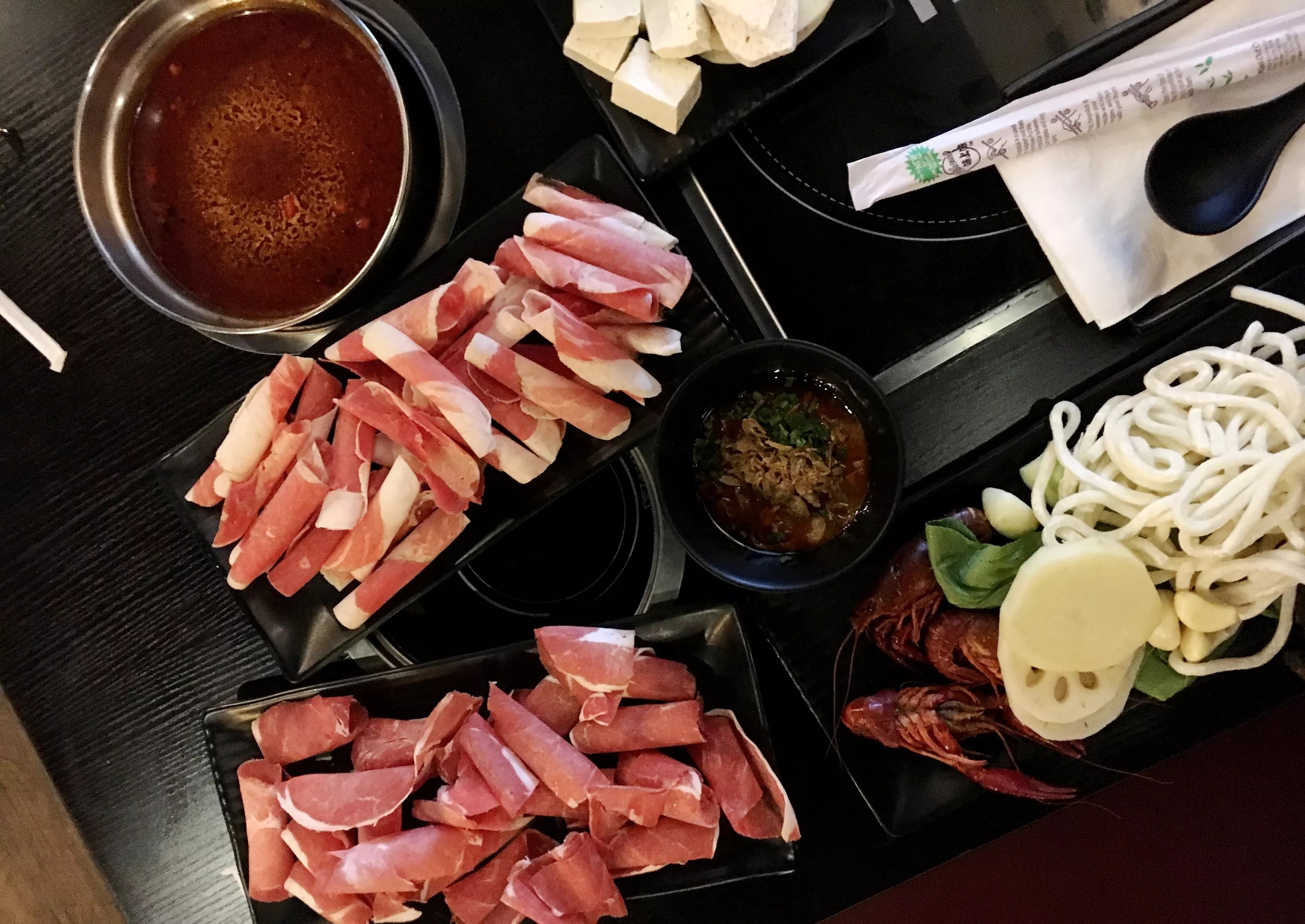 Thin-sliced lamb and beef are just two of the protein options for all-you-can-eat hot pot.