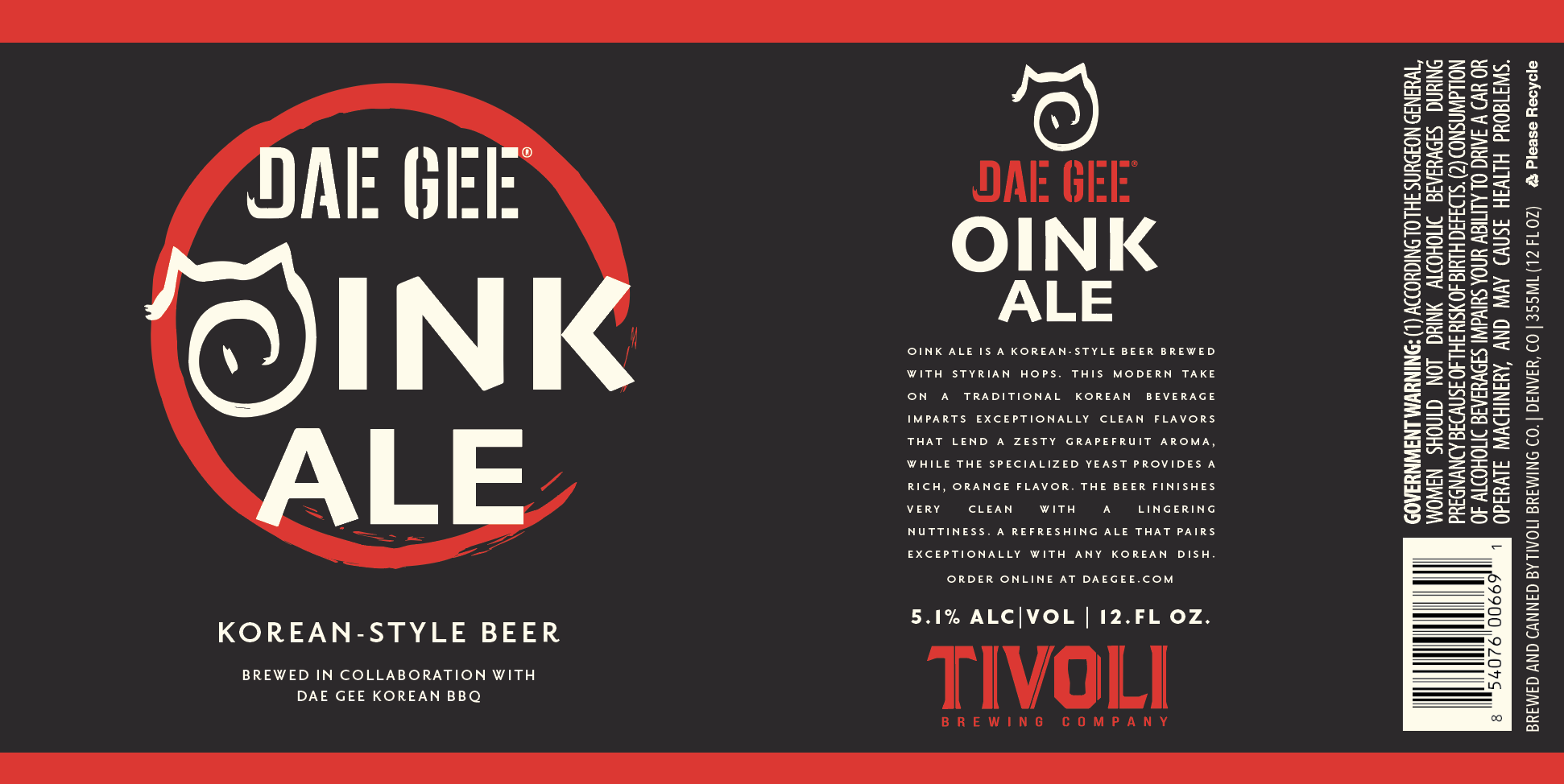 Kim was on board, and the result of their collaboration, Oink Ale, is already on tap at all five Dae Gee locations. A canned version will make its debut in February, and will be part of Kim’s shipping business.