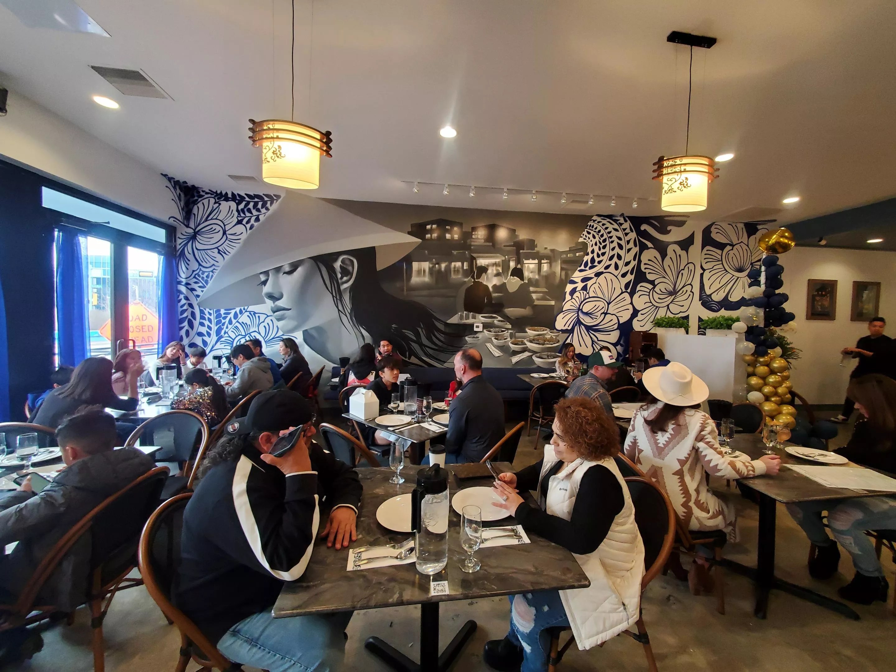 An Nguyen collaborated with artist Chad Bolsinger on the mural in her new restaurant.