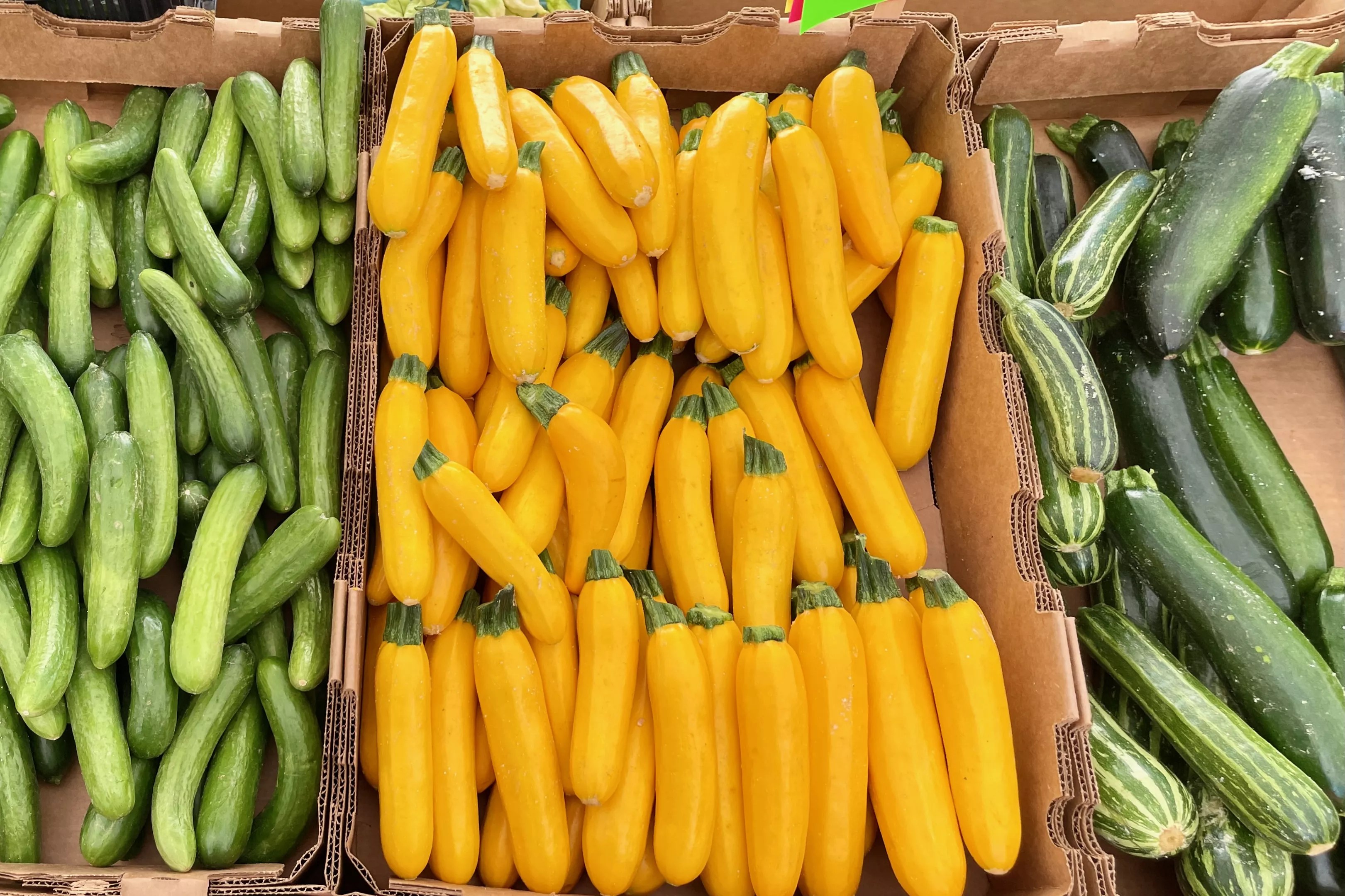 Check the produce stands for peak-season summer squash, strawberries and cherries this month.