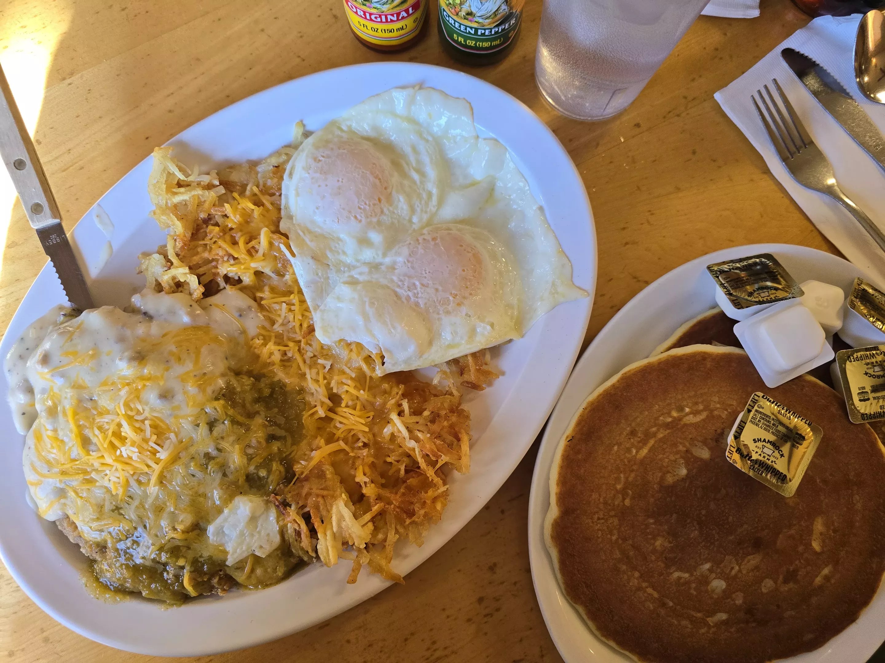In 2022, I wrote about one of my favorite mountain diners, Patio Pancake in Salida – just before it closed for good after 58 years in business. At the time, no one was sure what would take its place; thankfully, it turned out to be another diner. New owners rebranded the place Romeo’s Pancake, and I was happy to find it mostly unchanged. It’s still a low-key spot for standard breakfast fare and, dare I say, even better green chile than before. Pro tip: Order your chicken-fried steak or chicken-fried chicken (both $16) with half sausage gravy and half green chile.