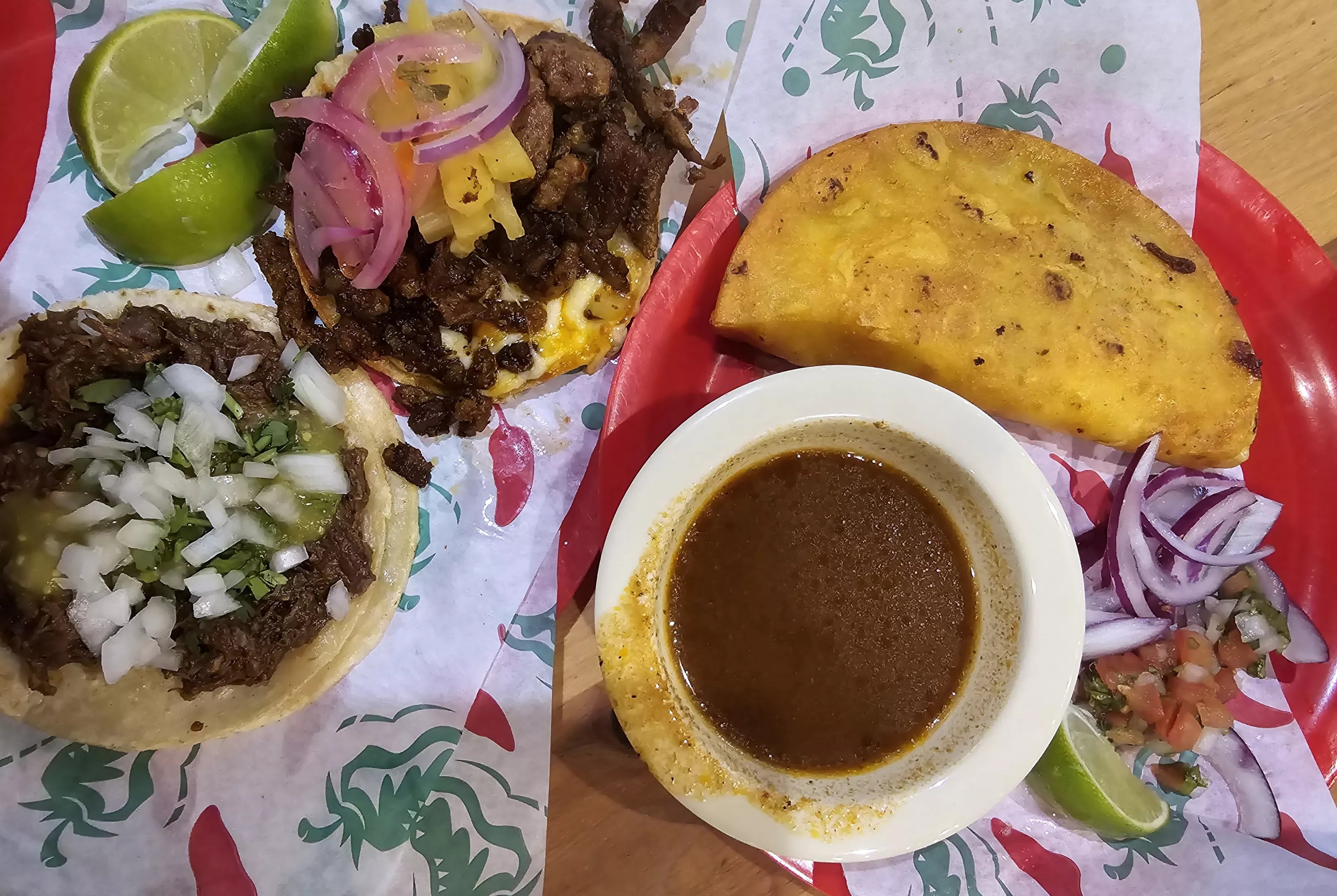This “little taco shop,” as its website describes, is tucked away in an unassuming strip mall in Centennial just south of Arapahoe and I-25. Since opening in the summer of 2022, it’s generated a lot of buzz and accolades, including being ranked 22nd among the top 100 taco stops in the country according to Yelp. Its owners, brother and sister duo Nati and Pako Venalonzo, came to Colorado from Mochitlán, Mexico, bringing along the family recipes that form the foundation of the restaurant’s offerings – a smattering of street taco staples served simply on warm corn tortillas with onion, lime and a choice of salsa. The crowd favorite, though, is the birria, in tacos loaded with stewed meat and cheese and served with a side of consomé for dipping – or opt to try it here in the form of pizza, ramen and even a birria burger.