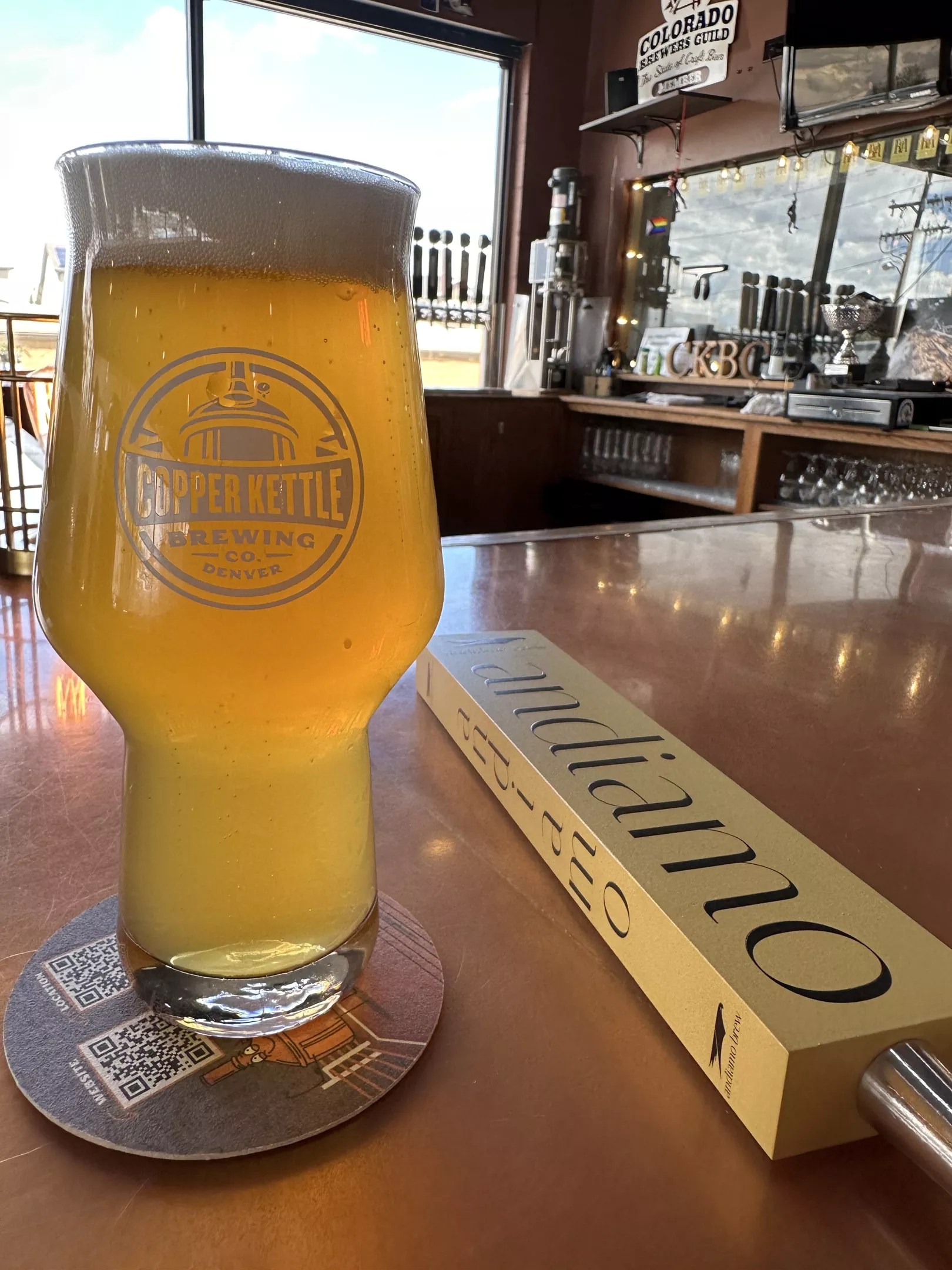 Andiamo’s beer is brewed at Copper Kettle Brewing in Denver.
