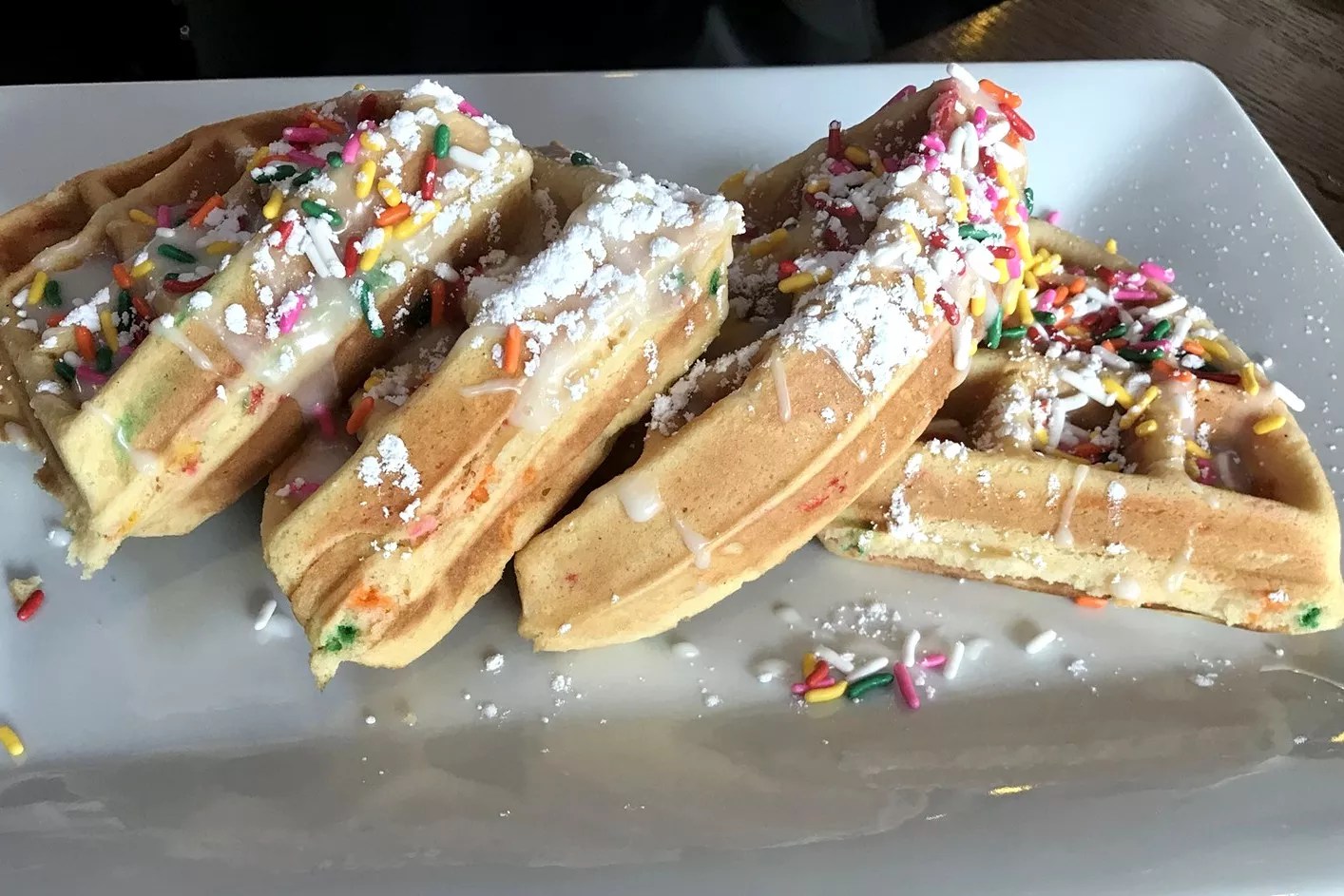 The birthday cake fritters have recently been reconfigured to turn sweet cake into waffles rather than deep-fried fritters, but the dish still brings birthday cake to a higher plane of existence. The dense waffle quarters are decorated with powdered sugar, icing and rainbow sprinkles – and you don’t even have to lie about your birthday to order it.