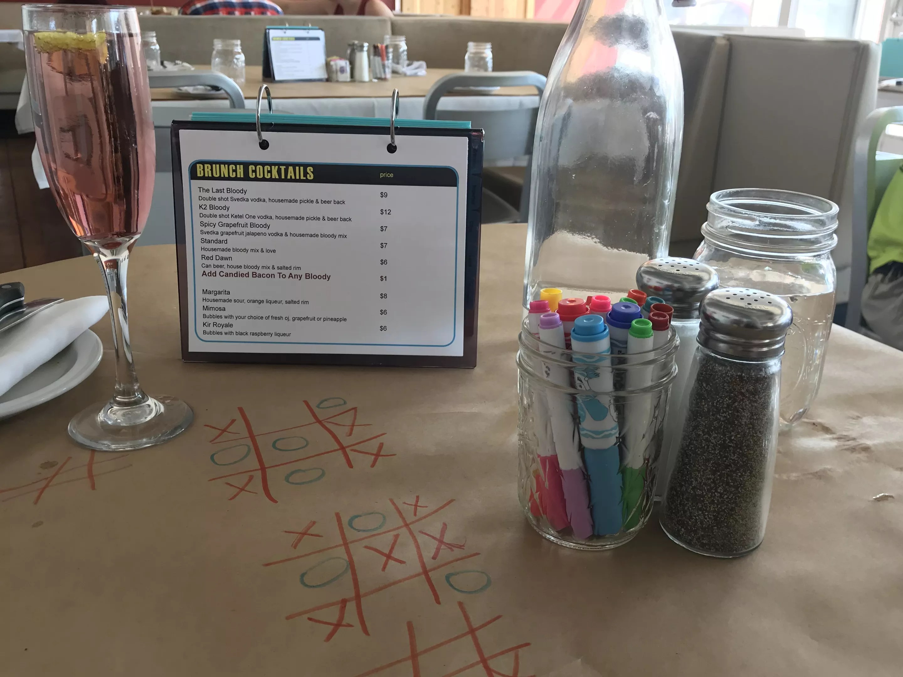Interstate Kitchen & Bar has been settled in the heart of the Art District on Santa Fe since 2009. The small patio out front holds a few tables, but, more important, also has cute little red water bowls for your four-legged friends. Inside, there’s a long bar that stretches about half the length of the restaurant, with big comfy booths in the back of the retro-styled dining room. But for brunch, the restaurant gives up some of its ’60s ambience in favor of an aesthetic I thoroughly approve of: brown paper covering every table, along with cups of felt-tip markers. My waitress assured me that coloring on the table is highly encouraged.