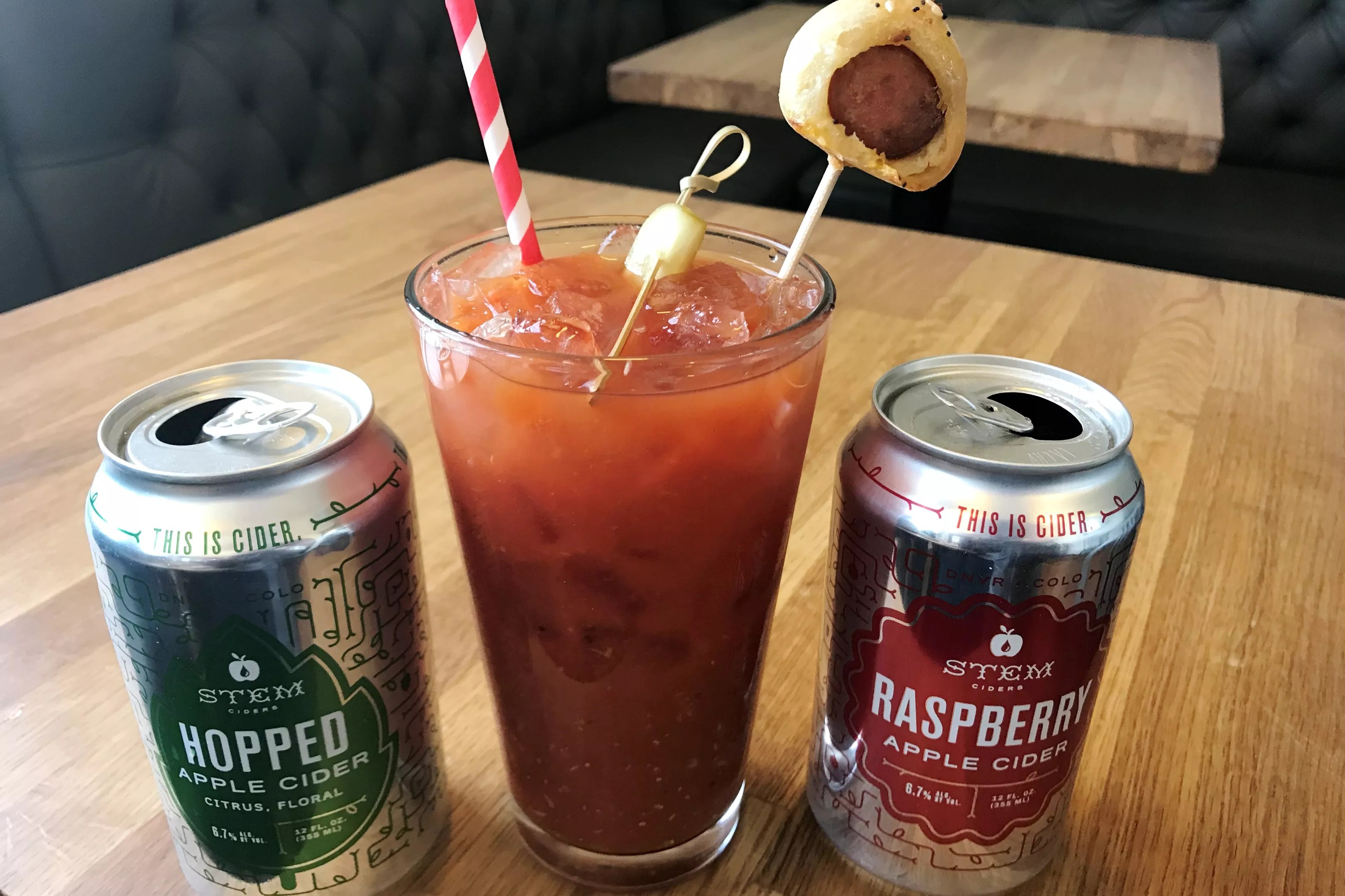 To make it a true Denver brunch, Latke Love offers mimosas, ciders, a few canned beers and Bloody Marys served with a pickle and a frank in a blanket.