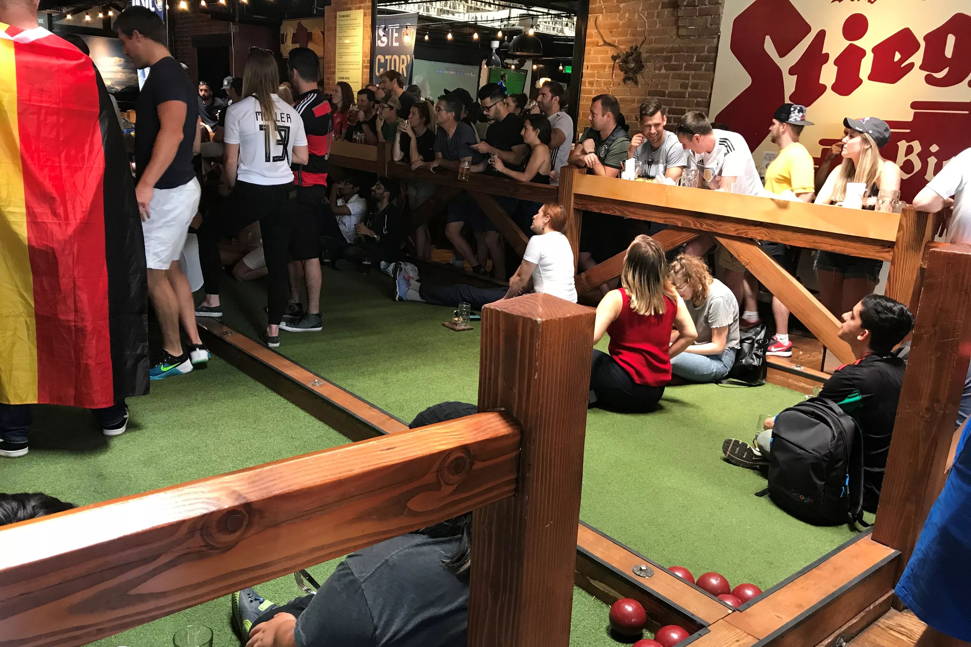 On my visit, though, Germany was playing Sweden in a World Cup soccer match, so fans spilled onto the bocce courts. The entire restaurant was packed with rowdy soccer supporters, and their enthusiasm was intoxicating (so I’m now intensely following World Cup action). Peredia even let die-hard fans bring in their own chairs and sit in front of the giant projection screen. Other regulars chose to step next door to Wally’s Wisconsin Tavern, which is under Rhein Haus ownership and serves the same brunch menu, plus a few Wisconsin staples.