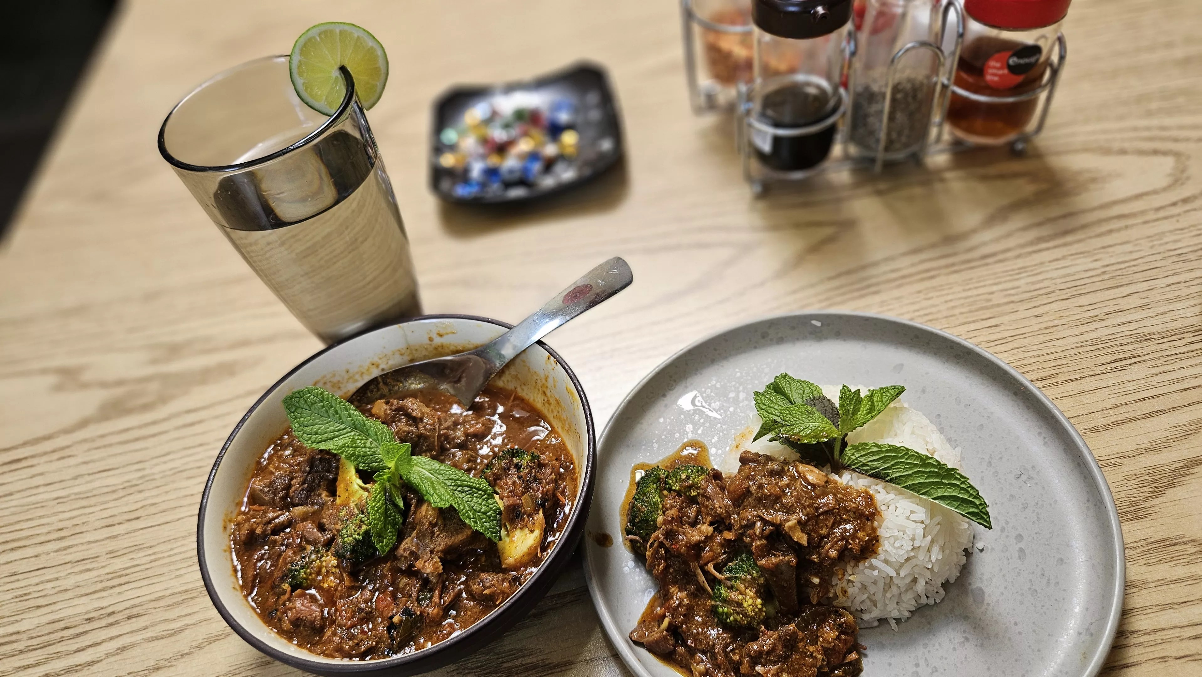 I ordered Burmese Goat Curry, which was rich and chunky with meat on the bone. While wonderfully savory, it was not as spicy as I’d hoped. I’d requested medium-spicy, not the medium they’d serve most customers, but closer to the heat they’d serve family members in the back. Next time, I’ll go for the full family-spicy lvel.