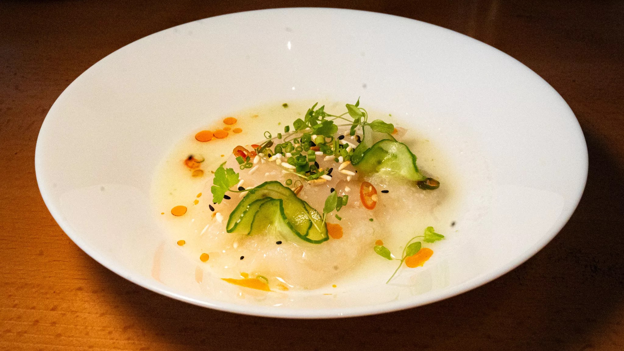Tiradito, a Peruvian scallop crudo.