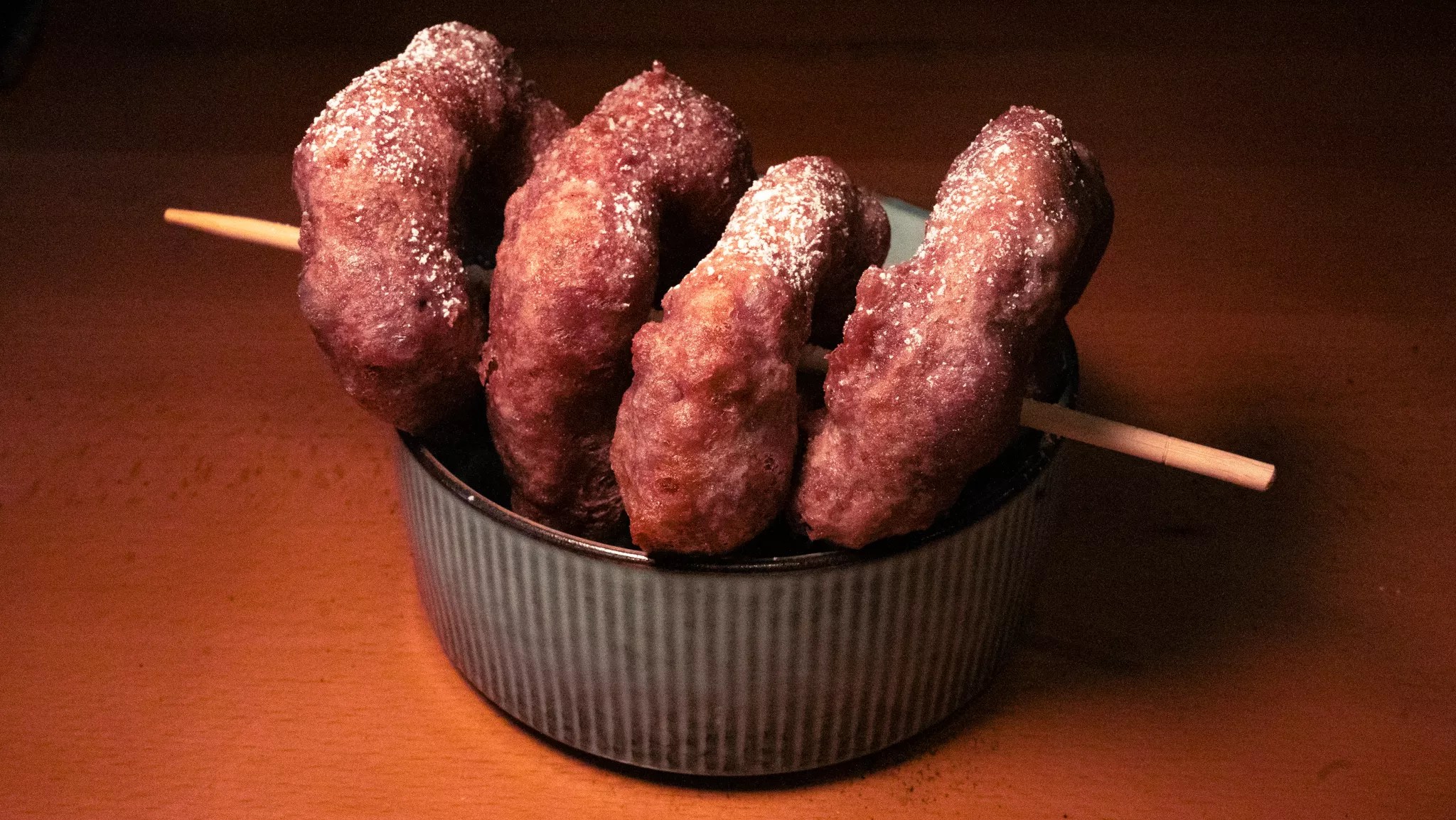 A version of picarones made with ube and taro.