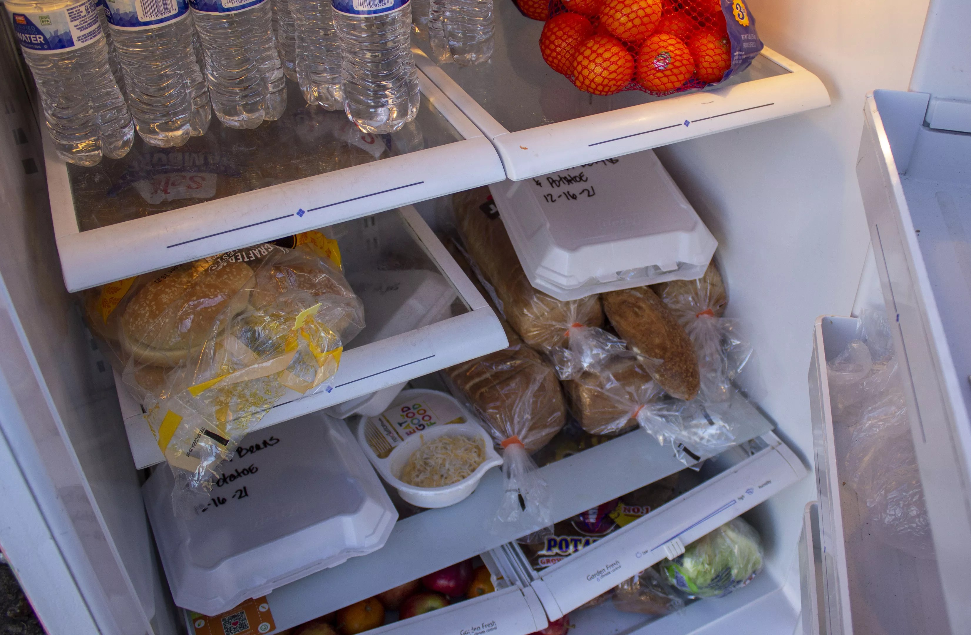 The Huckleberry fridge is on the side of the building on West 43rd Avenue, away from the patio and with enough privacy that people can take what they need without being watched by customers sitting outside. In fact, Goedman explains, the coffee shop has very little to do with the fridge aside from providing electricity. Volunteers from DCF routinely clean and sanitize the fridge and check to make sure it’s fully stocked.