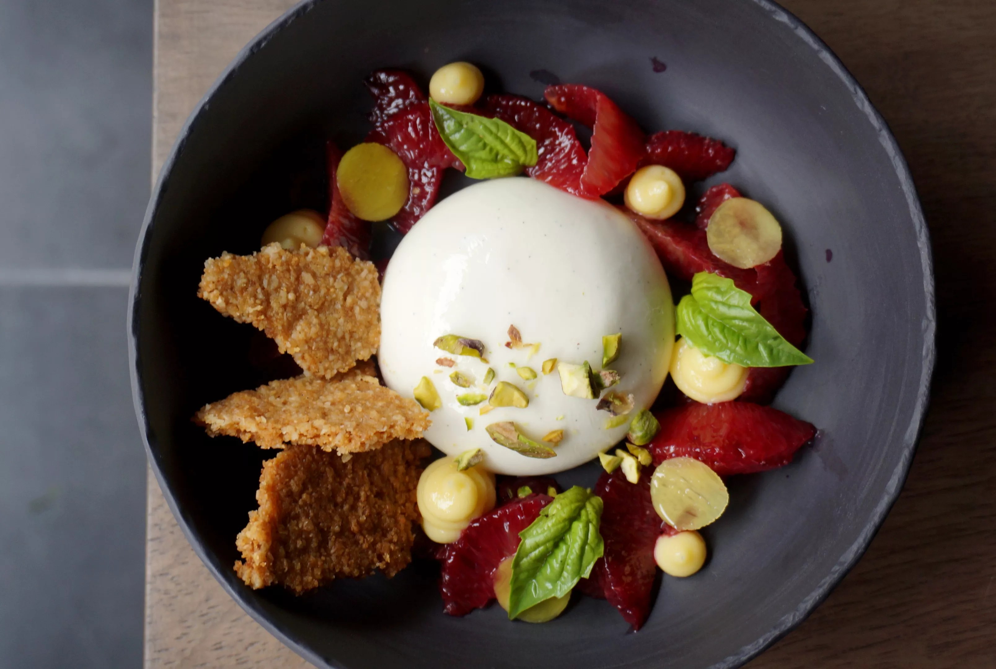 Poka Lola Social Club Burrata cheesecake with blood oranges and tangerine cream at Quality Italian. Mark Antonation