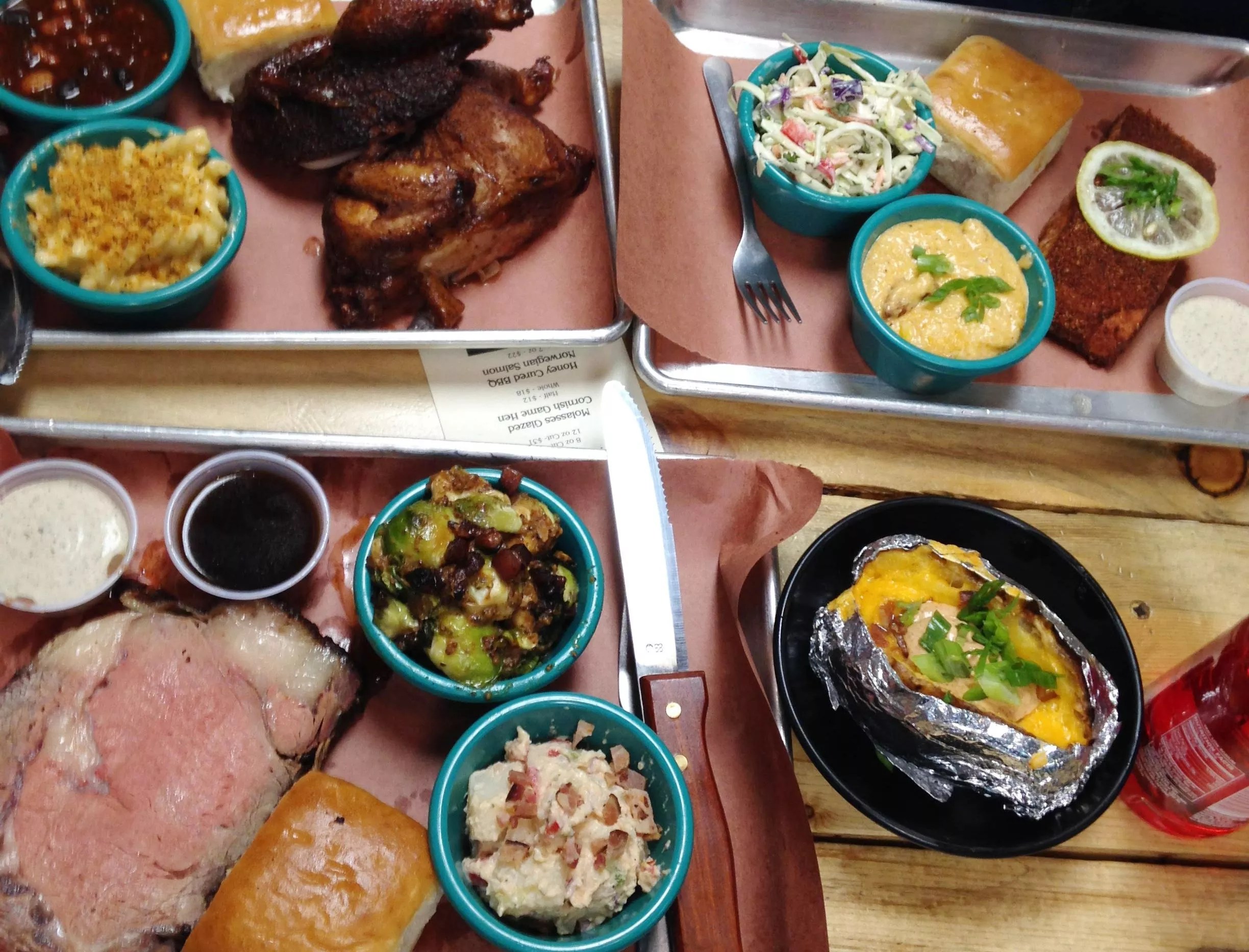 The only downside to this South Downing smokehouse is that the meats are usually gone well before the dinner hour; if you haven’t loaded up at lunchtime, you’re usually out of luck. But owners Coy and Rachael Webb want to feed the neighborhood dinner, too, so they’ve come up with a smaller supper menu with specialties you won’t find at lunch. Choose from molasses-glazed Cornish hen served halved or whole, a smoky slab of salmon, or a thick slice of slow-smoked prime rib in an eight- or twelve-ounce cut. A side and dinner roll come with each order, with prices ranging from $12 to $31.