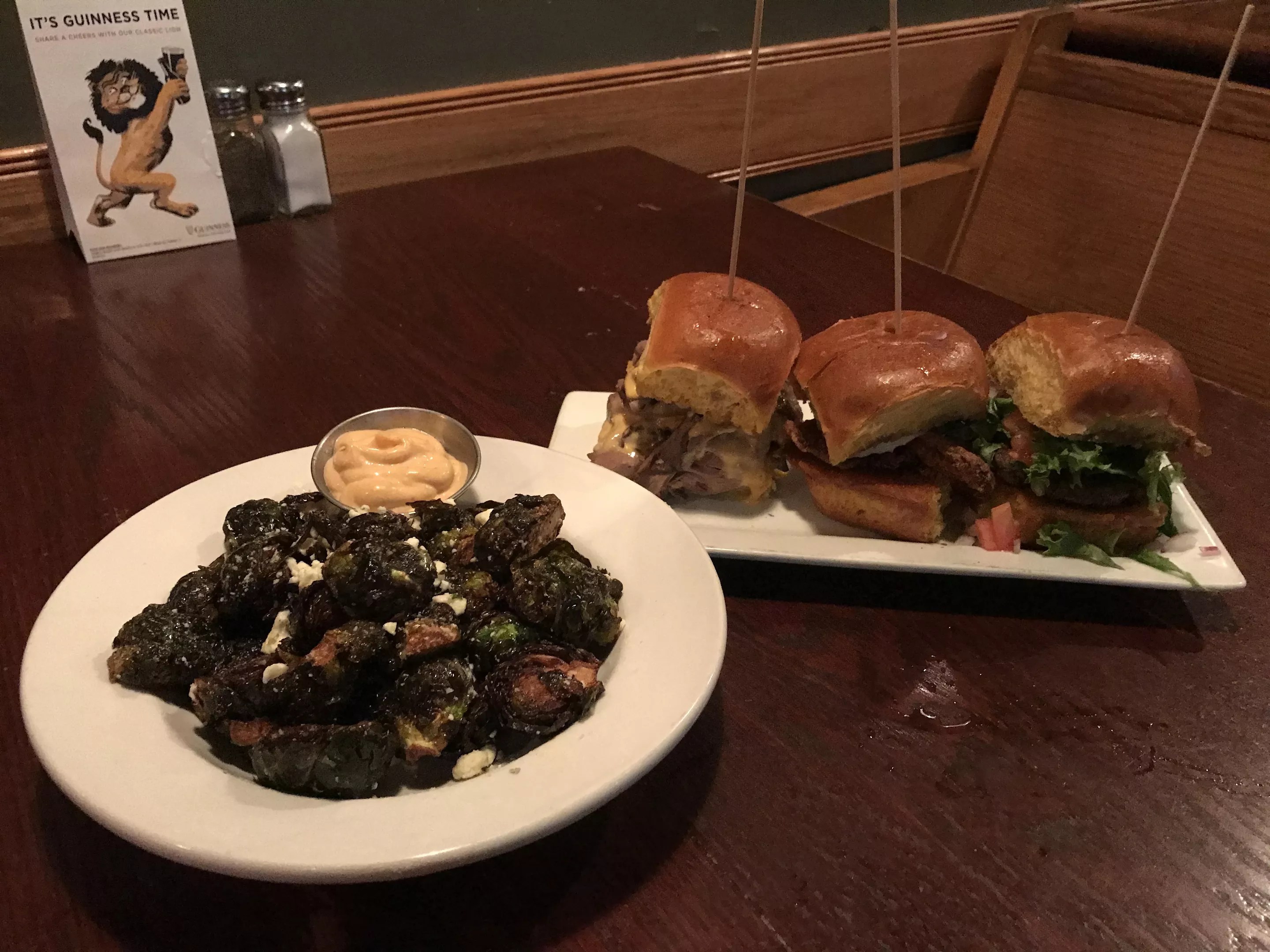 The beef slider was great, but I should have started with the chicken sandwich while it was crispy and hot, with the right amount of pickle to brighten it up. The third, a beef burger slider, was half backyard/half greasy chain burger, somehow medium rare (a feat for its size) without being juicy, and topped with shredded lettuce and diced tomatoes and onions. My partner let me dig into the Mexi-poutine, which tasted like standard, if legitimately spicy, green chile poured over thick restaurant fries. I also added an order of that trend of trends: fried Brussels sprouts ($5). As overdone as these have become, I don’t know if I’ll ever get sick of this, the year of the Brussels sprout. I’d like to say I’m a good judge of them, but if they’re crispy, well salted and not too oily, I’m totally in. Unlike Park Tavern’s messy lot, I appreciate that these sprouts came with the chipotle aioli on the side, and my companion commented that the feta added a nice tang.
