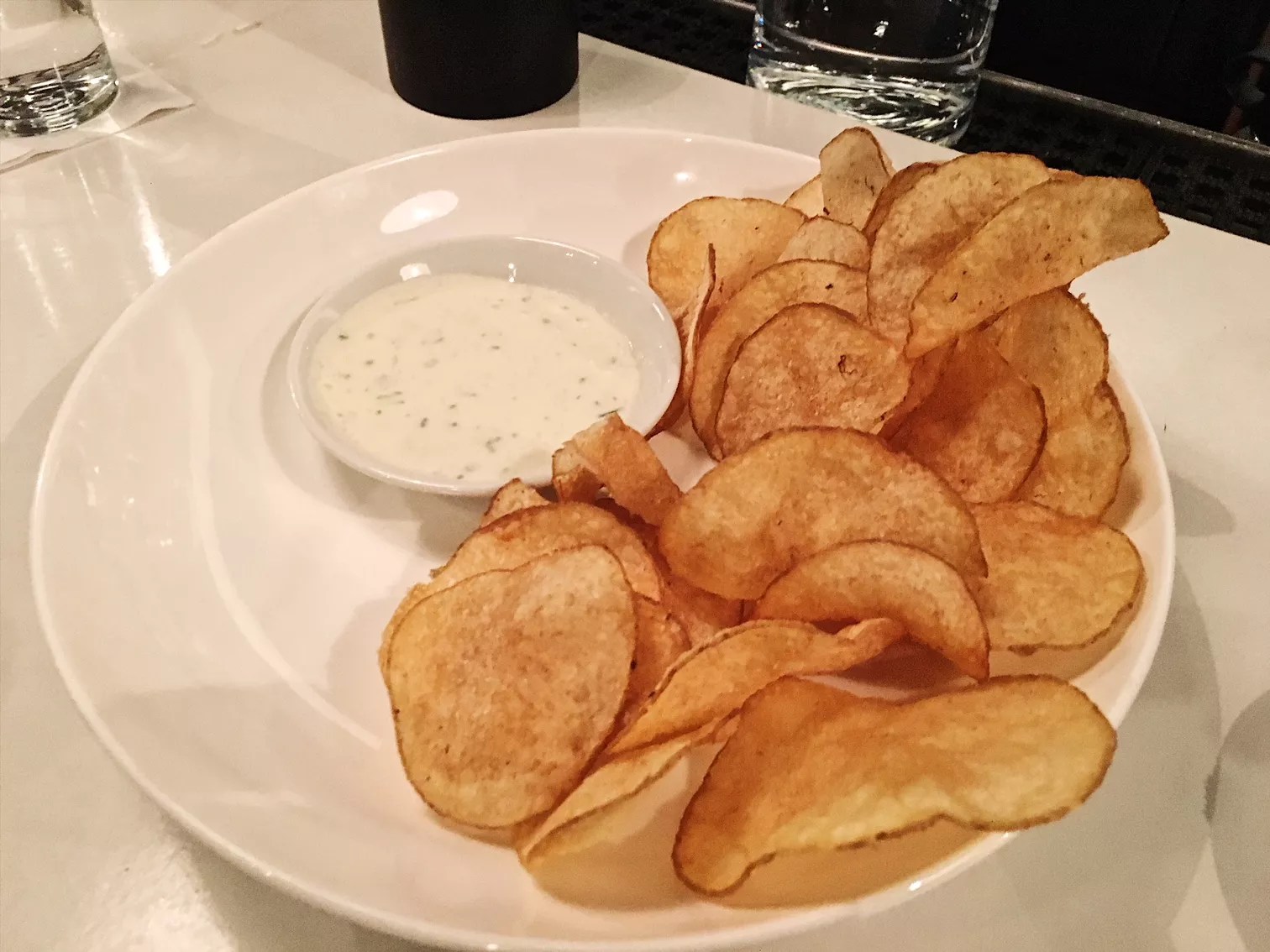 As for what you’ll actually be imbibing, Wayward’s high cocktail IQ indicates that that’s the section you should peruse first. If you’re hoping for a more affordable take on Wayward’s inventive drinks menu, however, you’re out of luck; the happy-hour list comprises bright classics only, including a whiskey sour, daiquiri, gin and tonic, Greyhound and Sidecar. That shouldn’t be reason to shy away: Not only are these palate-lifters ideal for pre-dinner drinking, they showcase the bar staff’s mastery of the basics. The daiquiri, tightly balanced between tart and sweet, is a great place to start, and don’t miss the Sidecar (not least because when was the last time you had a Sidecar?), a sour cognac cocktail enriched and smoothed with orange liqueur and garnished with a slice of blood orange and a sugared rim. One variety each of red, white and sparkling wine are also on offer, as is one beer. Chips and dip are easy to snack on, if not exactly memorable. Laura Shunk