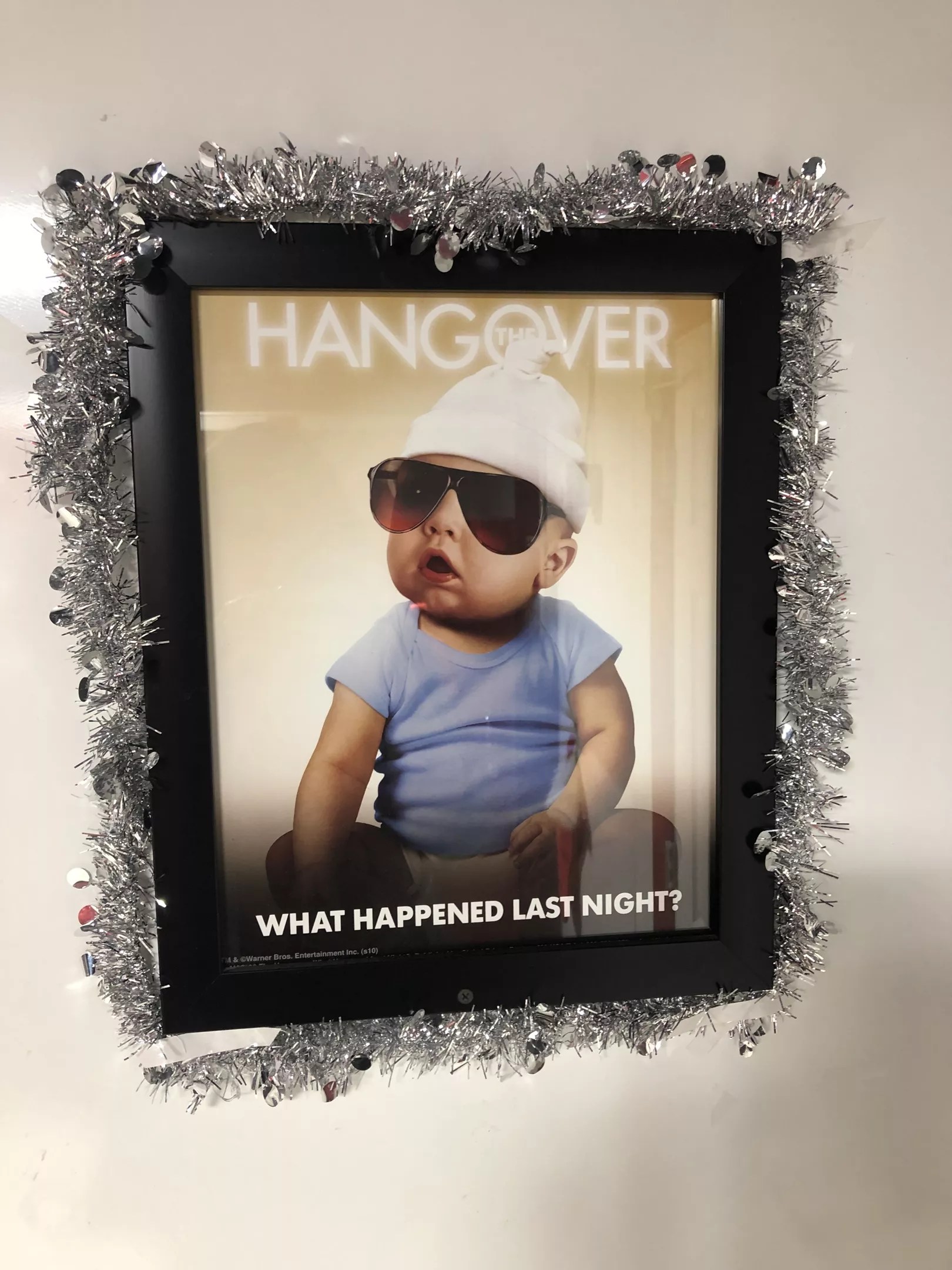 This poster in the bathroom is the perfect combination of Hangover movie memorabilia and holiday cheer.