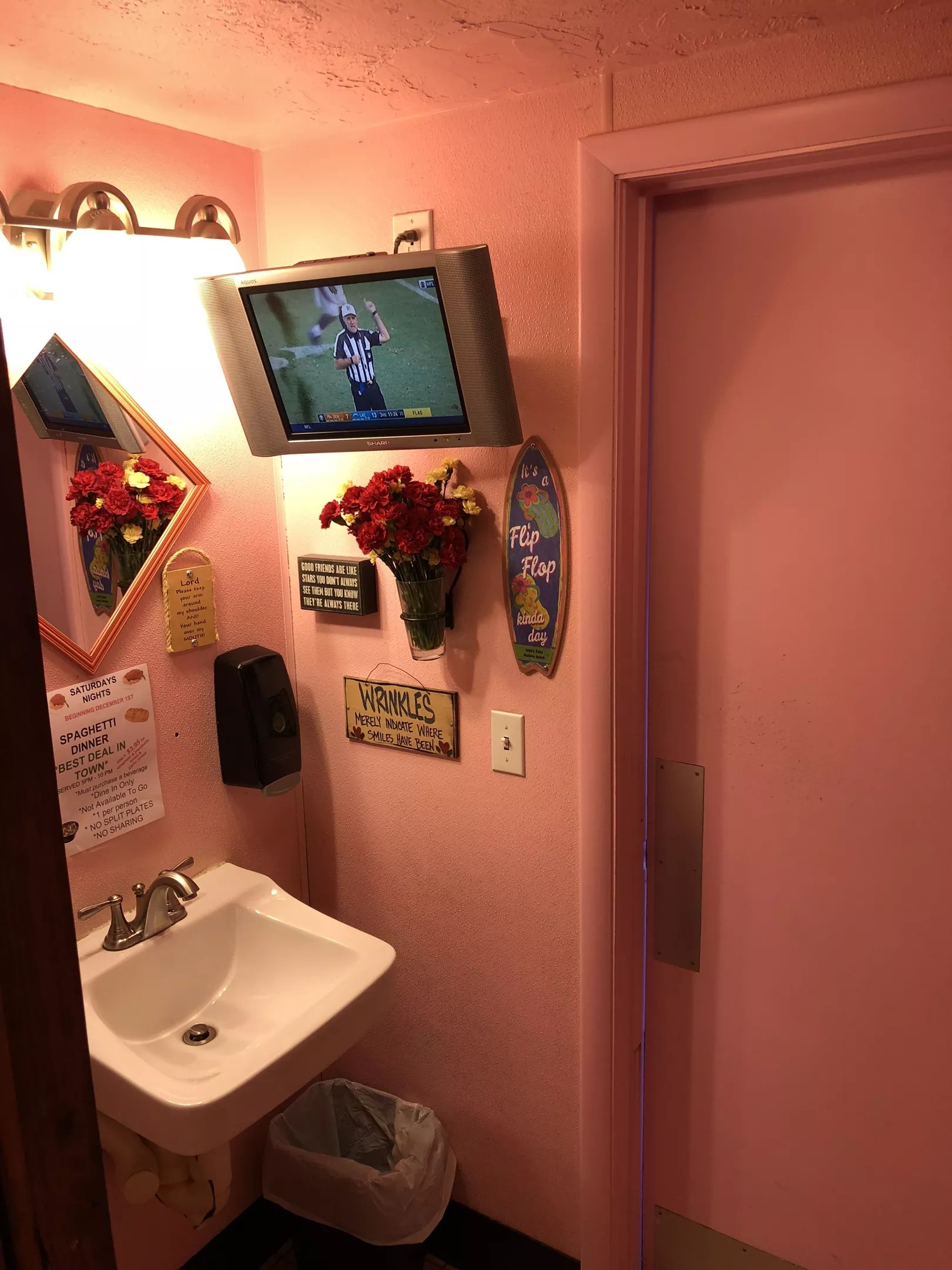 Bathroom TVs are available for the most committed sports fans at Wrigley’s.