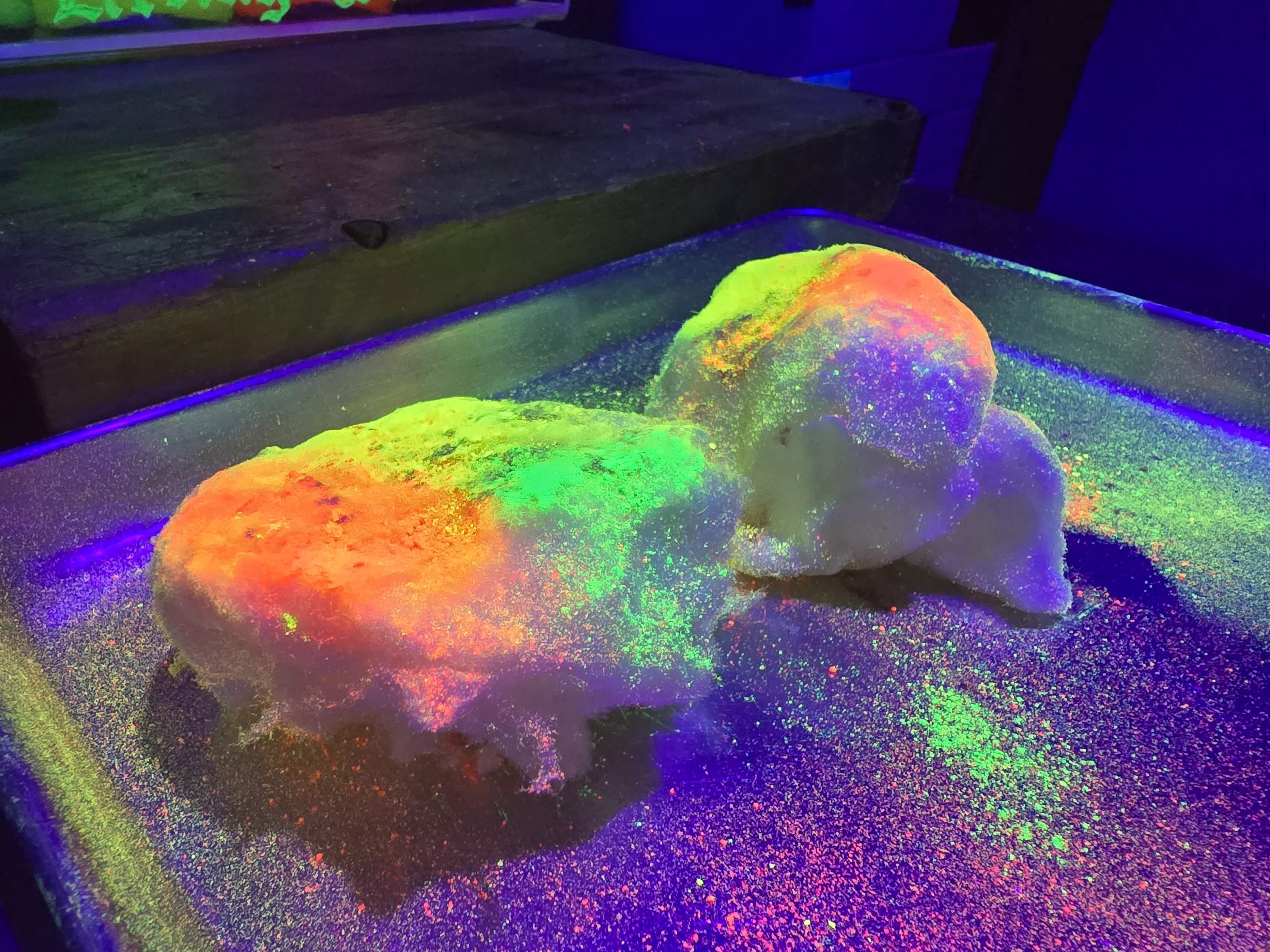 Guests can play with their food in the black-light room at the Inventing Room.