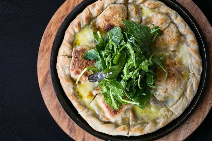 At White Pie, brothers Kris and Jason Wallenta dish up wood-fired pizzas inspired by their childhood in New Haven, Connecticut. But even though their pies were inspired by an East Coast classic, they aren’t chained to tradition – just as their tacos at Dos Santos, the Mexican restaurant they run just around the corner, aren’t bound by Mexican custom. Freed from expectations, White Pie’s crisp, charred, often garlicky, just-cheesy-enough pizzas open us to new possibilities for what else pizza can be, without straying too far into the land of crazy. Some are white, like the best-selling White Pie – with mozzarella sprinkled over crème fraîche, plus bacon, garlic, mushrooms and a poached egg – and the mind-boggling (in a good way) Paulie Walnuts, with cheese, mashed potatoes, candied walnuts and bacon. Others are red, like the Porky Porkorino, with sopressata that curls and crisps around the edges from the oven’s high heat, plus pickled jalapeños and chile-infused honey. Even if this style of pizza isn’t your thing, you’re sure to find something that is at White Pie, whether it’s creamy ten-layered lasagna, cacio e pepe or a frozen Negroni.