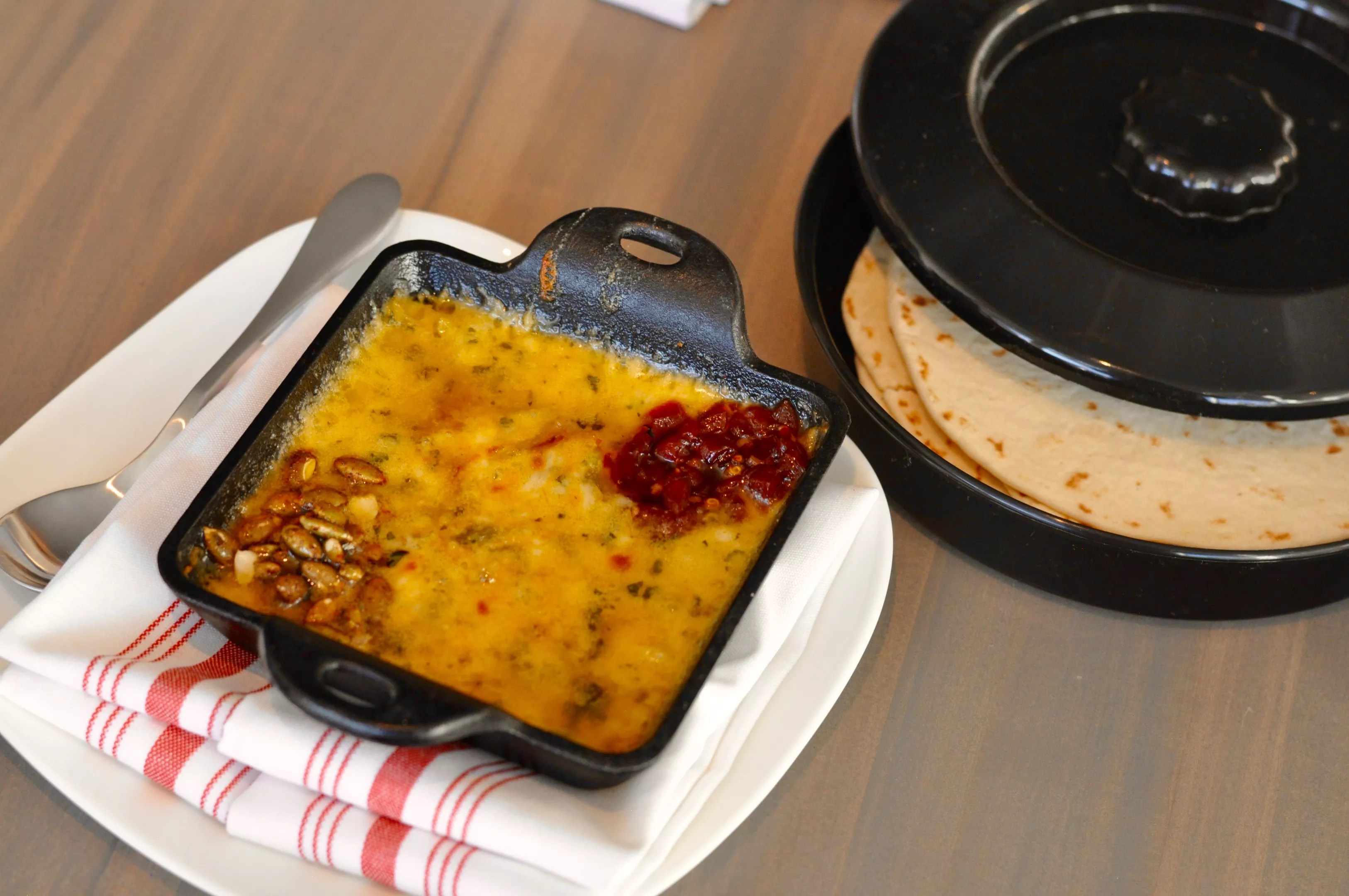 Santo’s queso fundido is a blend of many cheeses plus additional accoutrements.