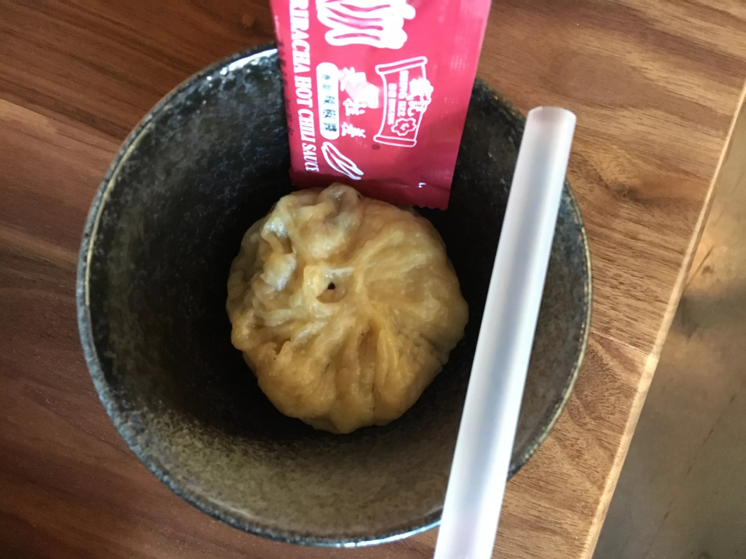 Cho77’s super-sized pho soup dumpling, complete with a straw for sucking down the broth.
