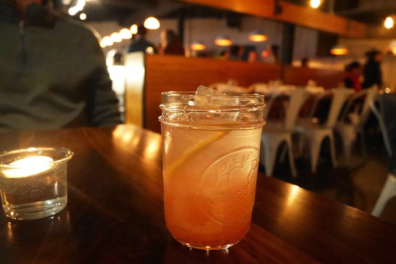 To join in the fun, start with a glass of rosé or the Ginny Jam from the cocktail menu. The bright, acidic notes of rosé pair well with rich, spicy food, especially fried chicken, while the carbonated gin cocktail is fresh and lively, finishing with the barely-there flavor of strawberry preserves – a nice country touch – that settle to the bottom of the glass.