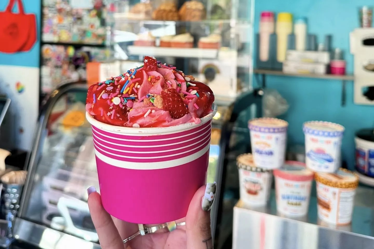In addition to celebrating inclusivity, she aimed to make her company stand out from the former tenant: Make, Believe Bakery, which also specialized in plant-based desserts. “A lot of people told me, ‘How do you think you’re going to be successful when you’re going to a place where a bakery closed?’ But I came in with a different angle and it just caught on,” she explains.