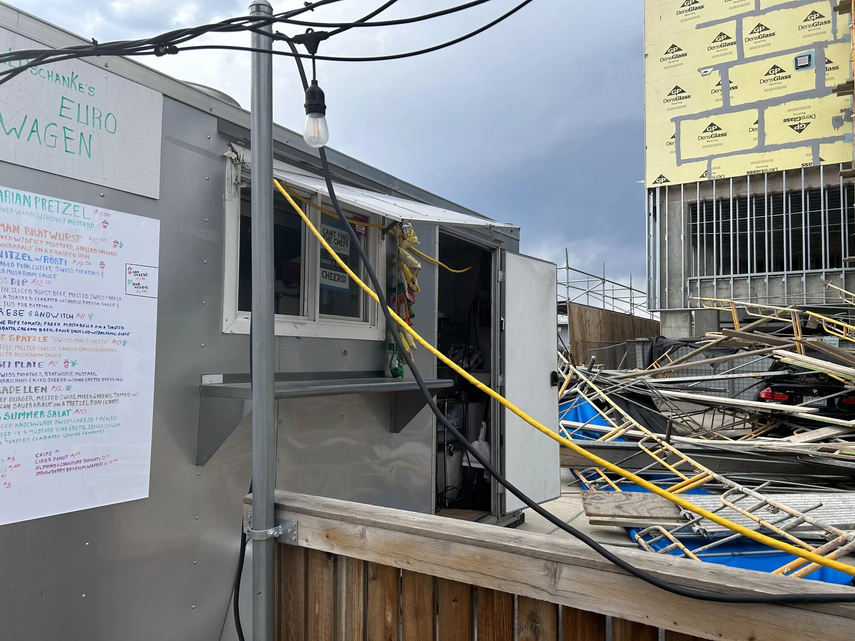 “Thank goodness for all the patrons being so calm,” she notes. “If something like this had to happen, the way it happened was crazy lucky. … No one was injured, let alone worse.” A few cars belonging to patrons were damaged, however, and those parked in WaldschÁ¤nke’s lot were trapped overnight until the debris could be removed. “Two to three bicycles were also severely damaged, one of which was a rare collector’s item/model,” Dufresne adds.