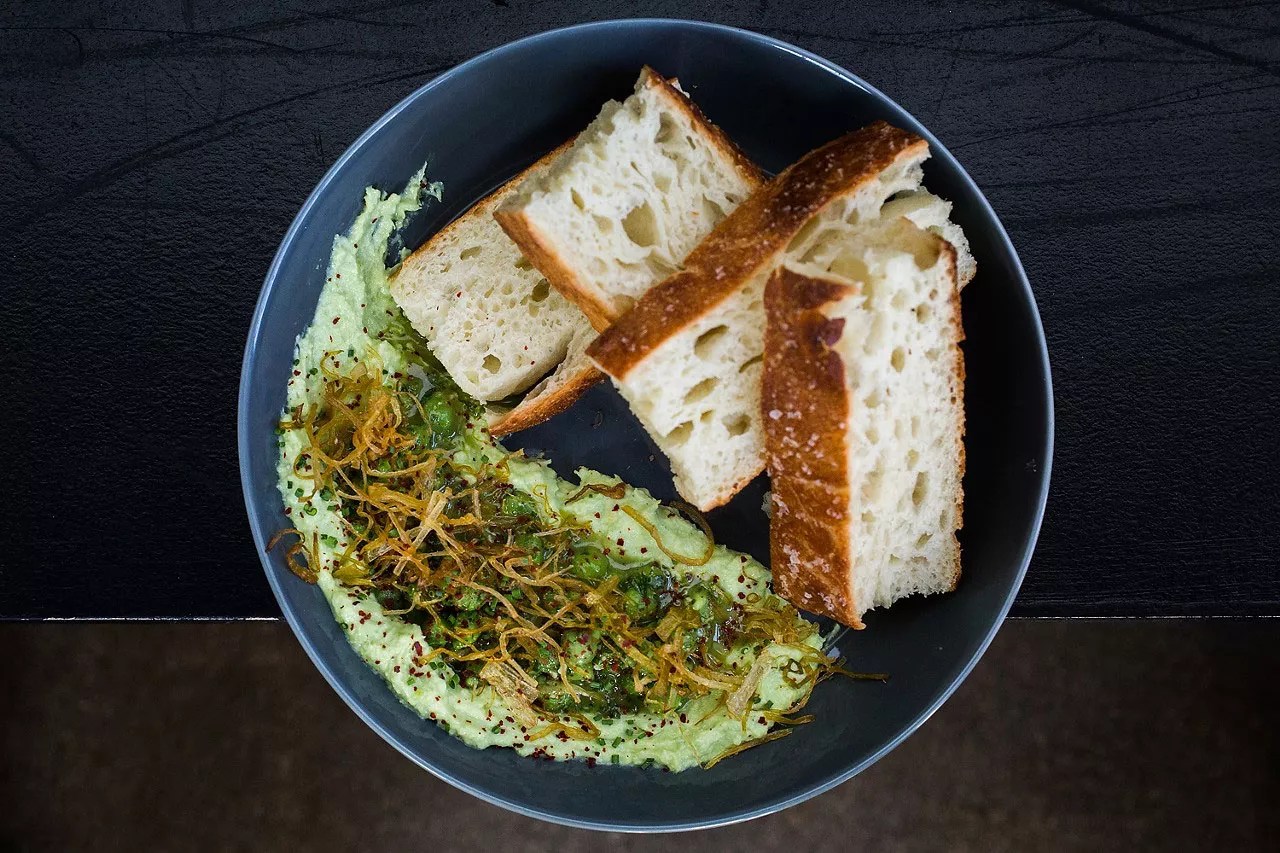 And things really get out of hand with the mint fazzoletti, a freewheeling entree that would’ve been right at home at Lower48 Kitchen, the critically acclaimed but largely misunderstood restaurant where Figura and White (then chef/owner and sous-chef, respectively) met. The dish is built around thin sheets of pasta verde, tinted an arresting hue from spinach and mint blended into the dough. In Italy’s Emilia-Romagna, the region famous for prosciutto and Parmigiano-reggiano, similar green sheets are favored for lasagna. Here they’re cut into ravioli-sized rectangles and piled high in a bowl with items you’ve probably never seen on pasta before, at least not in this combination: lamb ragù – milder and less tomatoey than it sounds – Kalamatas, mint and pistachios. If executed differently, the dish could be a standout. But instead, the noodles are piled high, turning into a sticky mound. Mint leaves are left whole, so one bite makes the next few taste like toothpaste. Chopped, dehydrated kalamatas overpower when heaped in a briny pile. And the lamb ragù, which tastes less like lamb and more like nearly disintegrated pork, is incorporated sparingly, as if it were caviar.