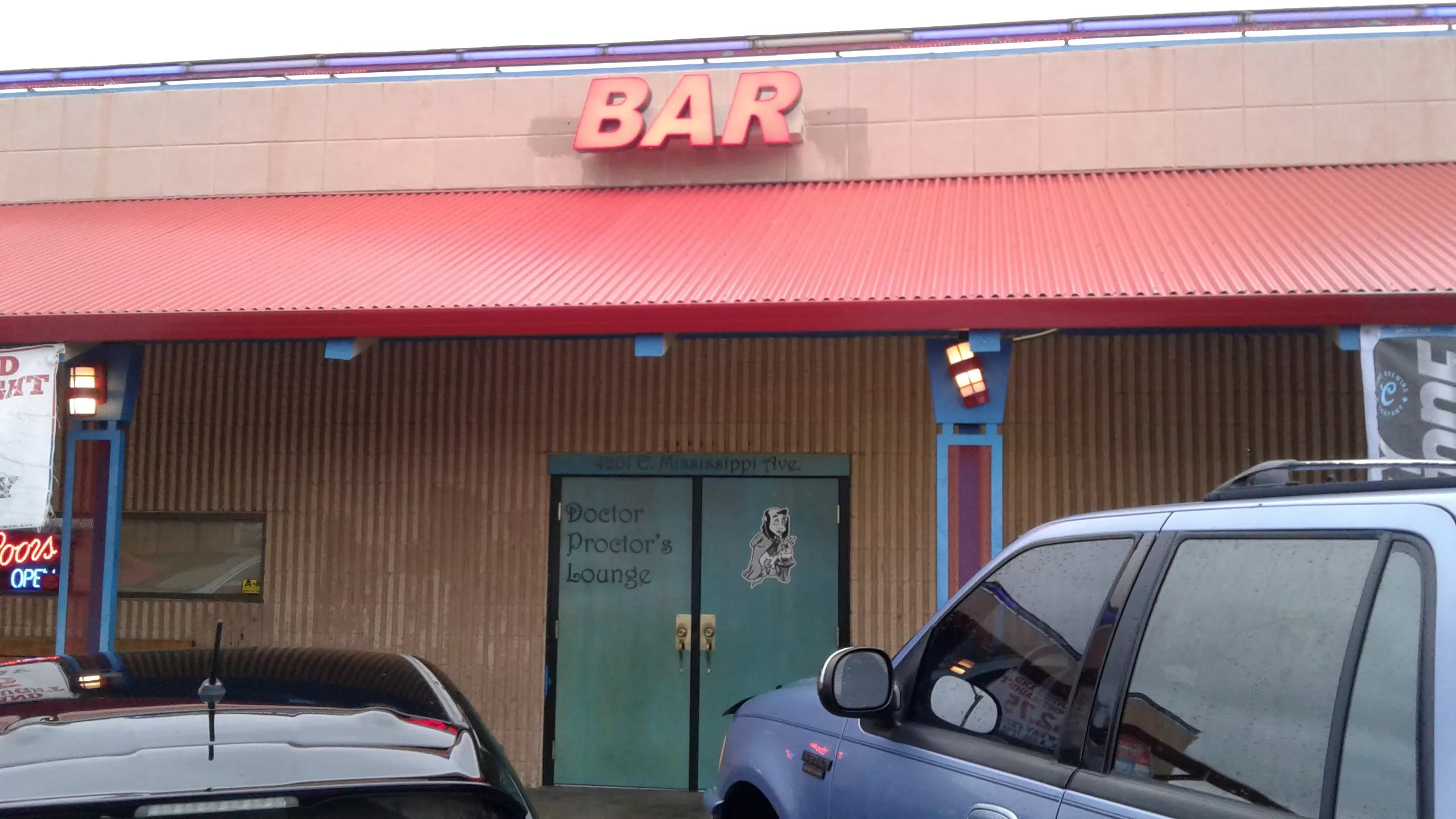 The only reason I knew Doctor Proctor’s Lounge in Glendale existed was because my friend used to date a guy who lived in an apartment complex around the corner. The bar is hidden in plain sight, with only a small overhead neon sign that simply reads “BAR.” You have to look closely to see the painted lettering on the front door letting you know the actual name of the bar is Doctor Proctor’s. It’s in a strip mall just off of Colorado Boulevard, at 4201 East Mississippi Avenue, right next to a liquor store, a Chinese buffet, and a children’s book store called the Bookies that my friends who are teachers get overly excited about.