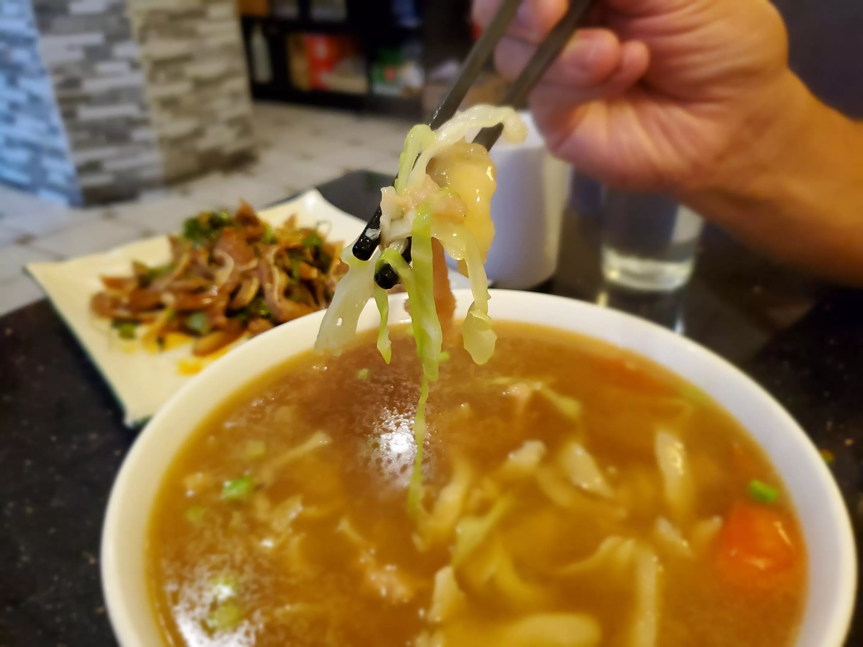 Even on a warm summer evening, the knife-cut noodle soup is satisfying,