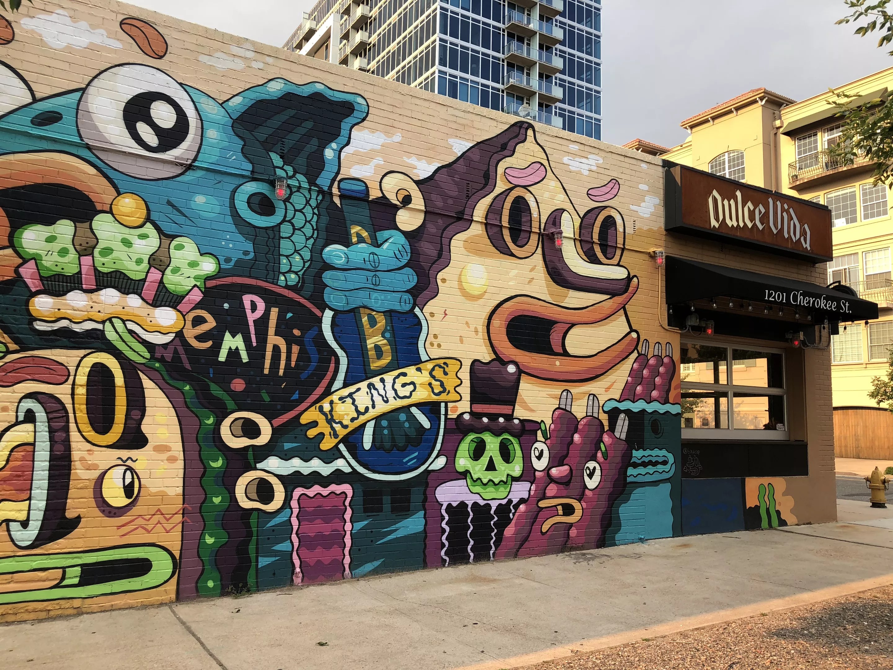 This Memphis mural was painted by artist Birdcap on the side of the Dulce Vida building.