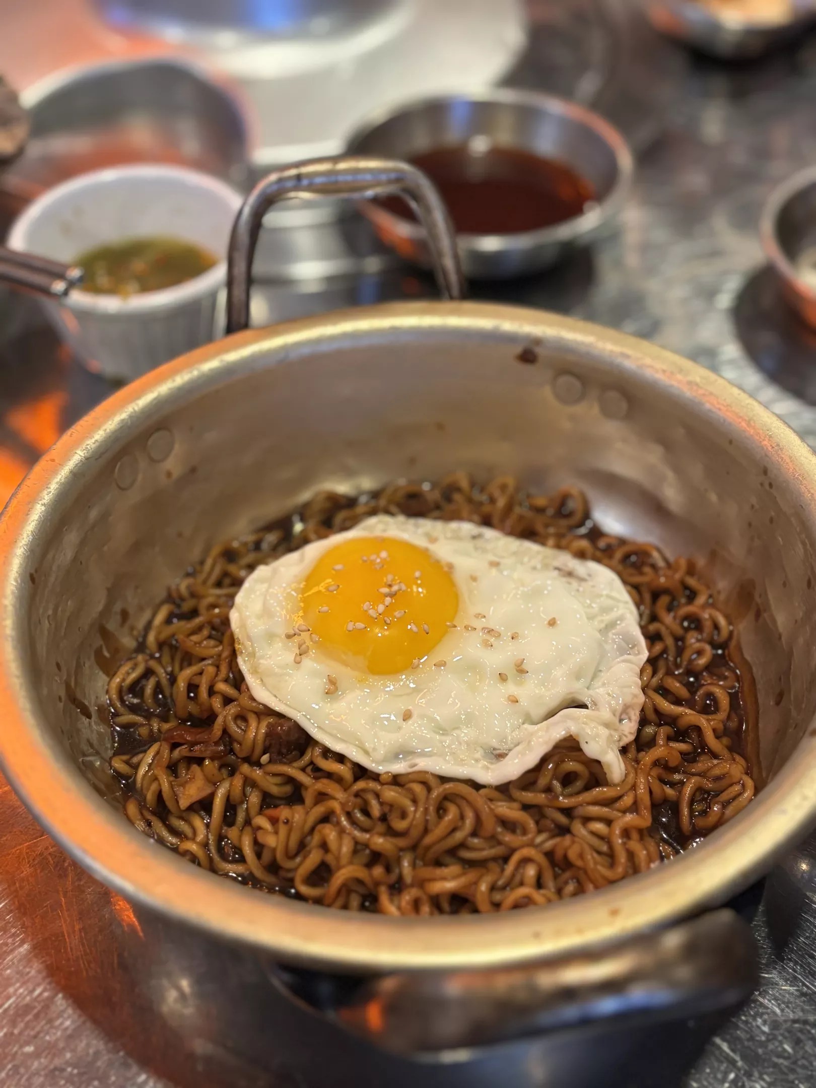 The black bean noodles with a fried egg was a repeat order for the table.