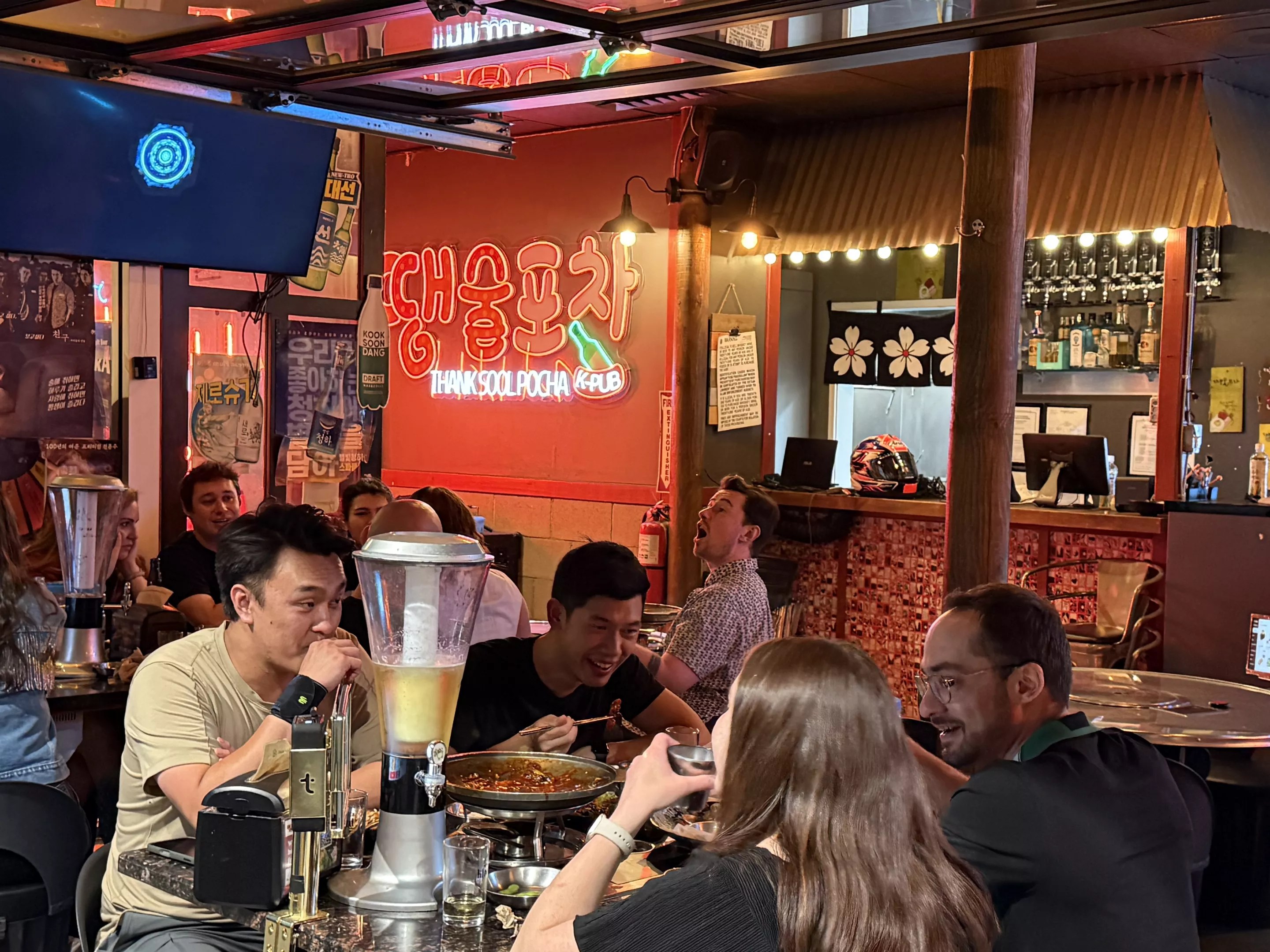 The Soju Bomb Tower is a common sight on most tables at Thank Sool Pocha.