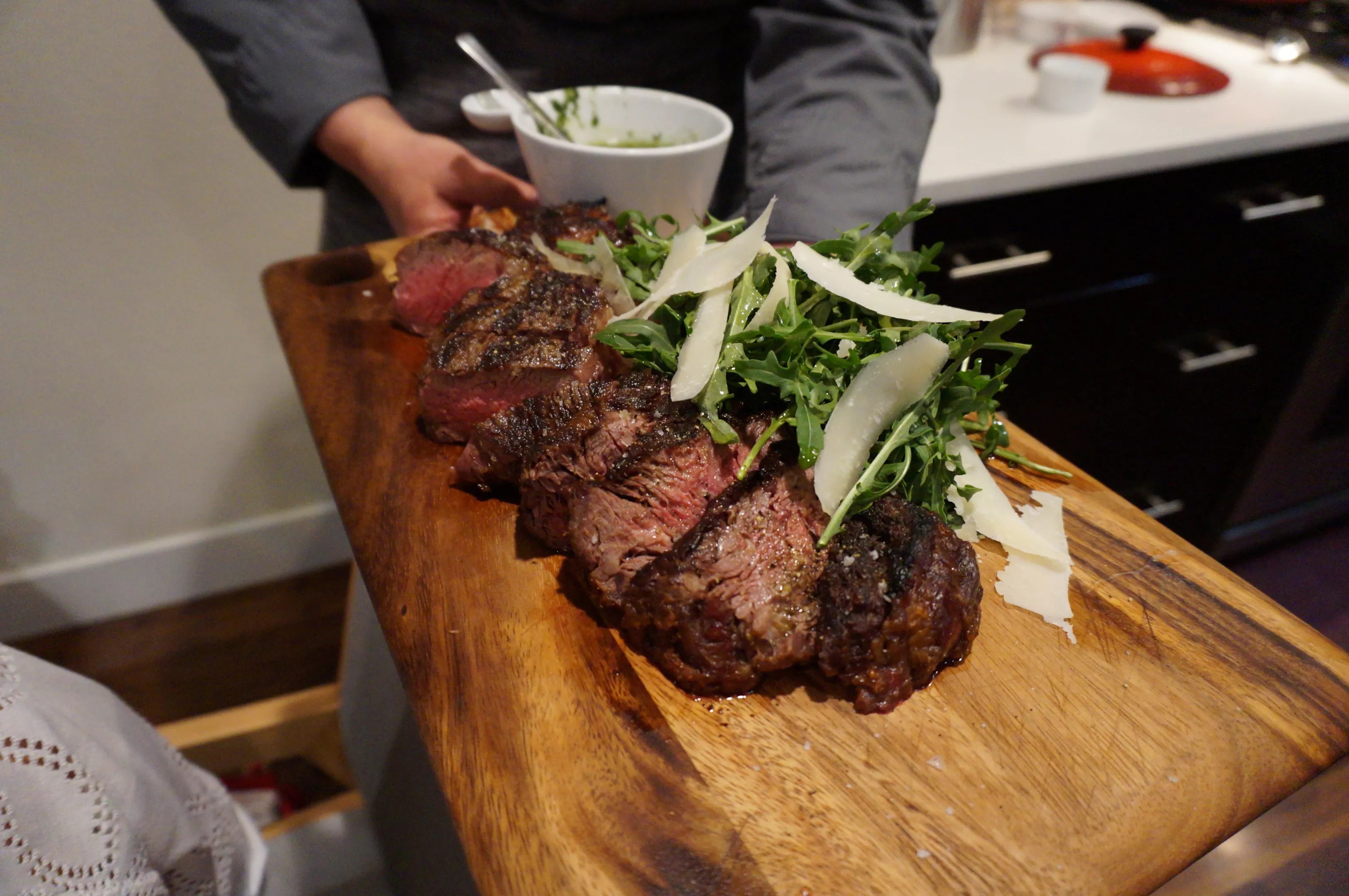 Angus beef ribeye grilled over wood coals and served with salsa verde.