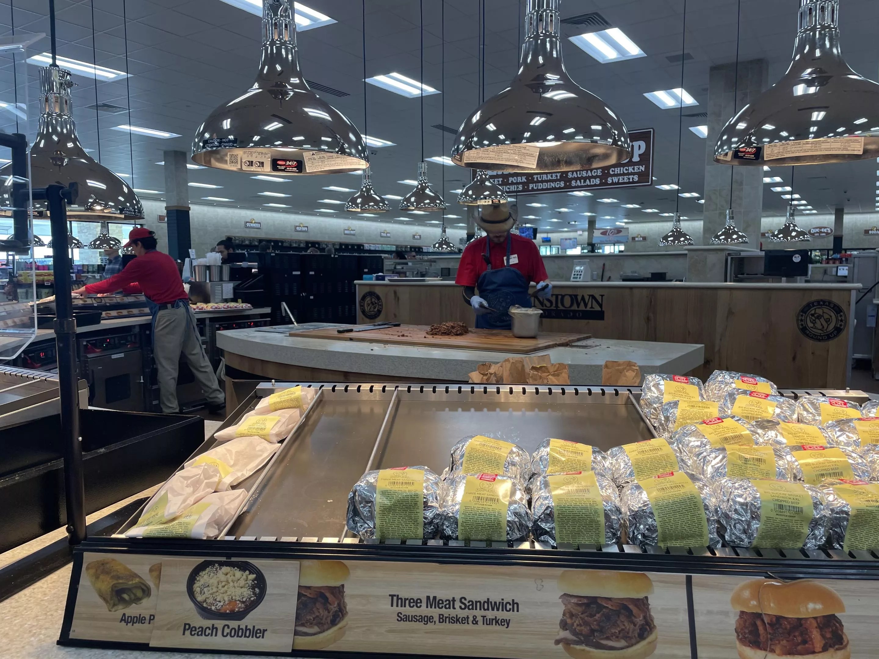 The Texas Round Up station takes center stage in the store; it’s where the barbecue is prepped and packaged. At all hours of the day, someone – usually wearing a cowboy hat – can be found slinging sandwiches there.