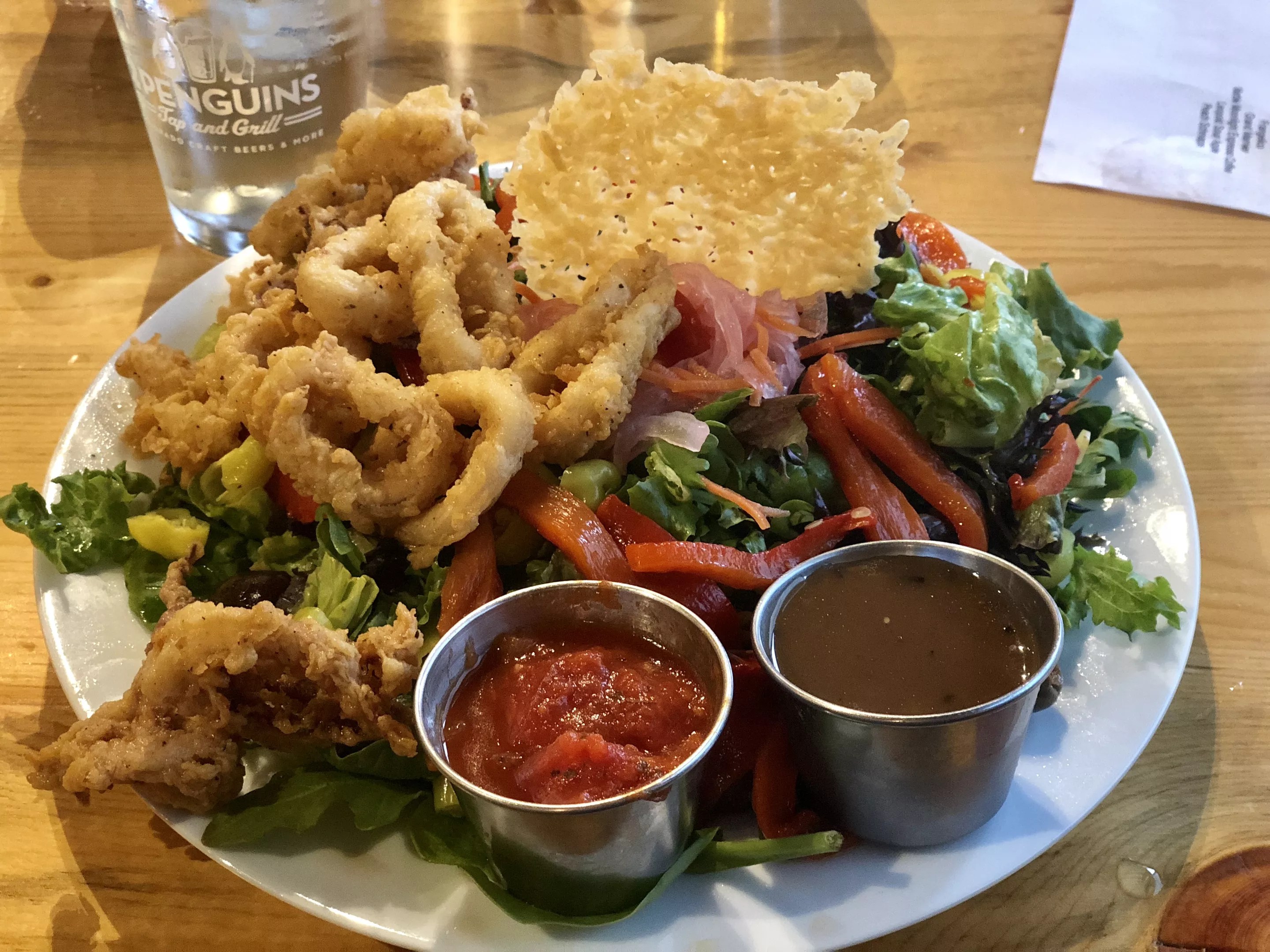 Calamari salad with balsamic vinaigrette and marinara.