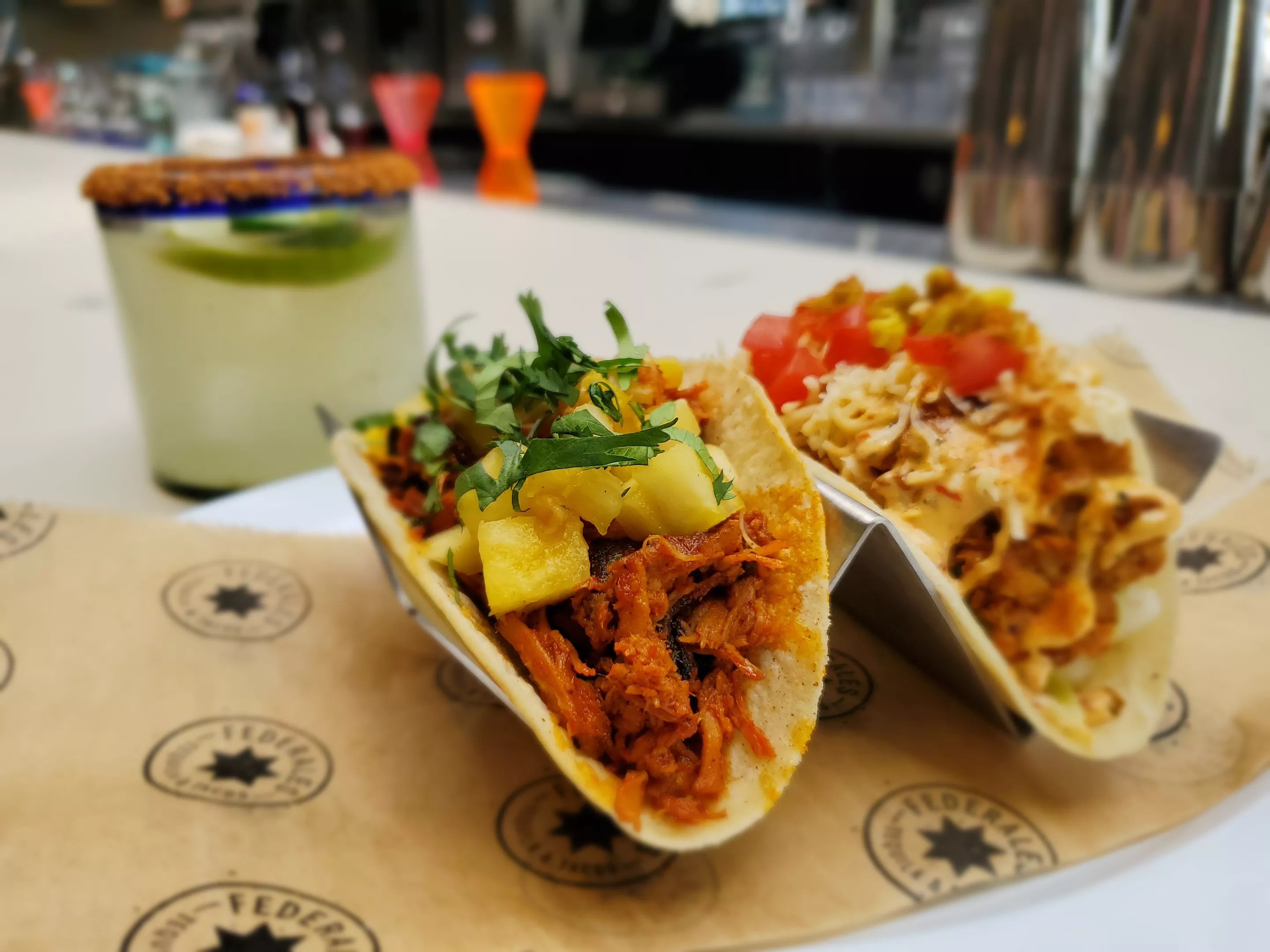 The original idea for Federales was developed in collaboration with Hogsalt, the group behind Brendan Sodikoff’s Au Cheval. In fact, that’s where the name came from – though Hogsalt is no longer associated with the brand. Since “Federales” is slang for the former Mexican national police force and the term holds some negative connotations for the Hispanic community, it seems a somewhat odd choice for the name of a concept built on tacos and tequila from a group with no Hispanic roots to speak of.
