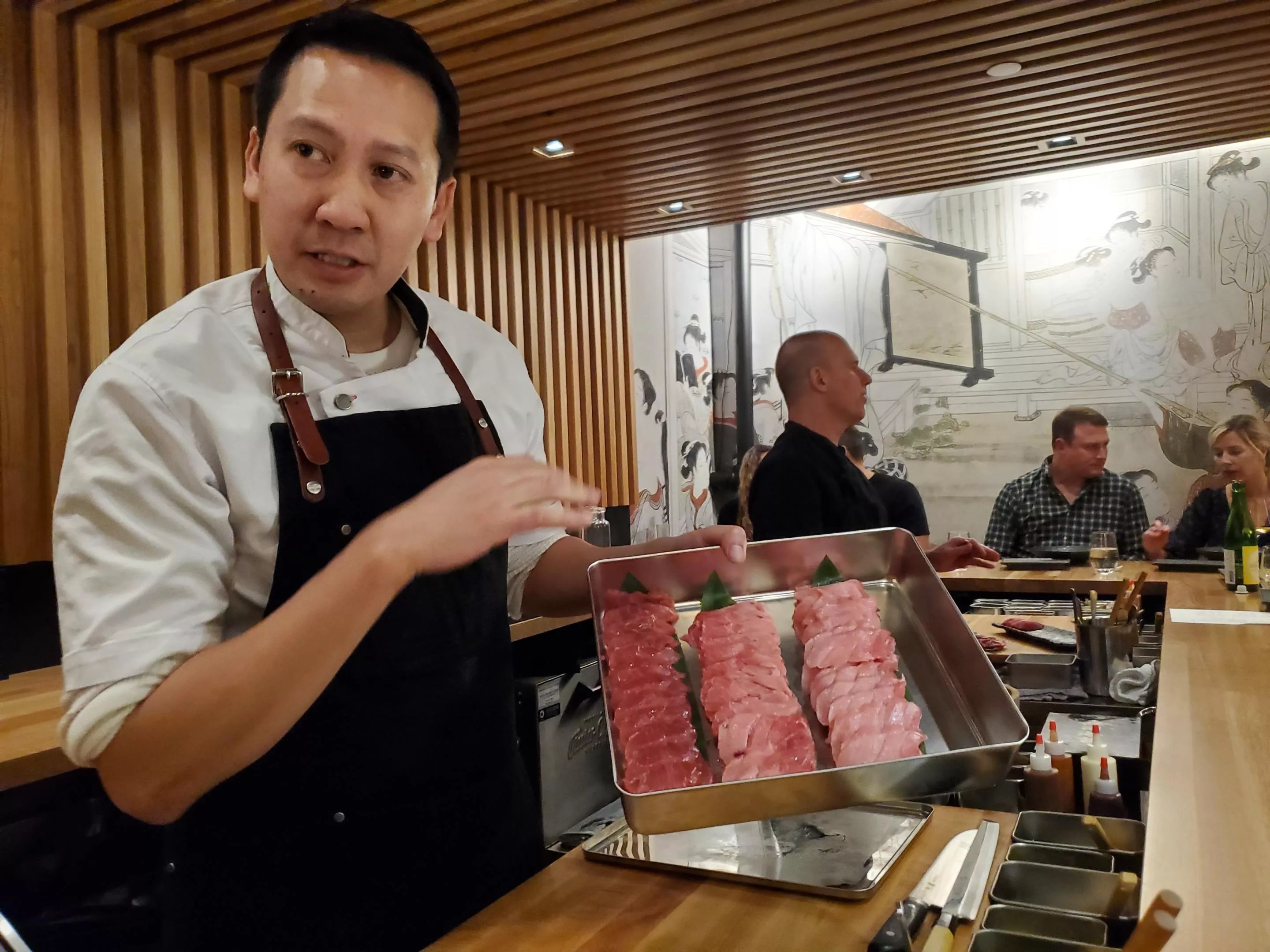 Chef Phraseuth “Paul” Sananikone showed off the different cuts of tuna used for three of the courses.