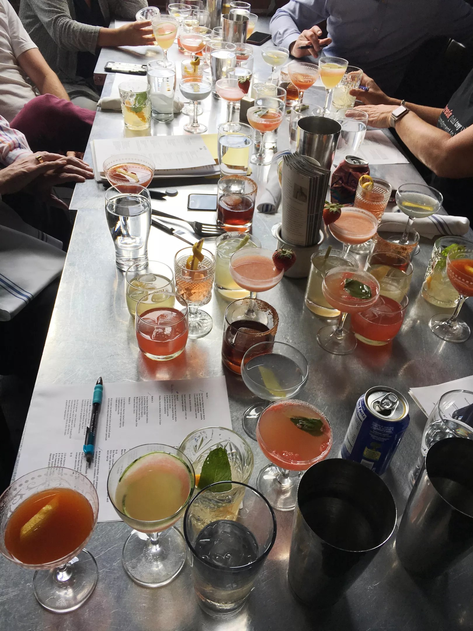 Bartenders weren’t the only cocktail competitors; the contest was opened to everyone, so waiters, chefs and runners also contributed their own concoctions. Bar managers from the five restaurants narrowed down the entries to two or three cocktails each and then conducted a tasting to determine which drink would go on the menus of the restaurants. Five winners were chosen, and they’ll be available to customers beginning Monday, June 4. Purchase four and the fifth will be free, and tag the one you like best on Instagram to help choose an overall champ.