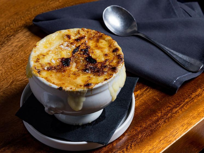 Despite its name, Reckless Noodles, which opened last year in Capitol Hill, only offers a handful of noodle dishes. While we love many of the non-noodle options, like the caramelized prawns, the Ma La Braised Beef Cheek served over thick wheat noodles is a standout. It’s made with Sichuan peppercorns as well as punchy pickled Fresno peppers, which balance out the richness of the meat. Brasserie Brixton’s French onion soup is on its new happy-hour menu. Shawn Campbell