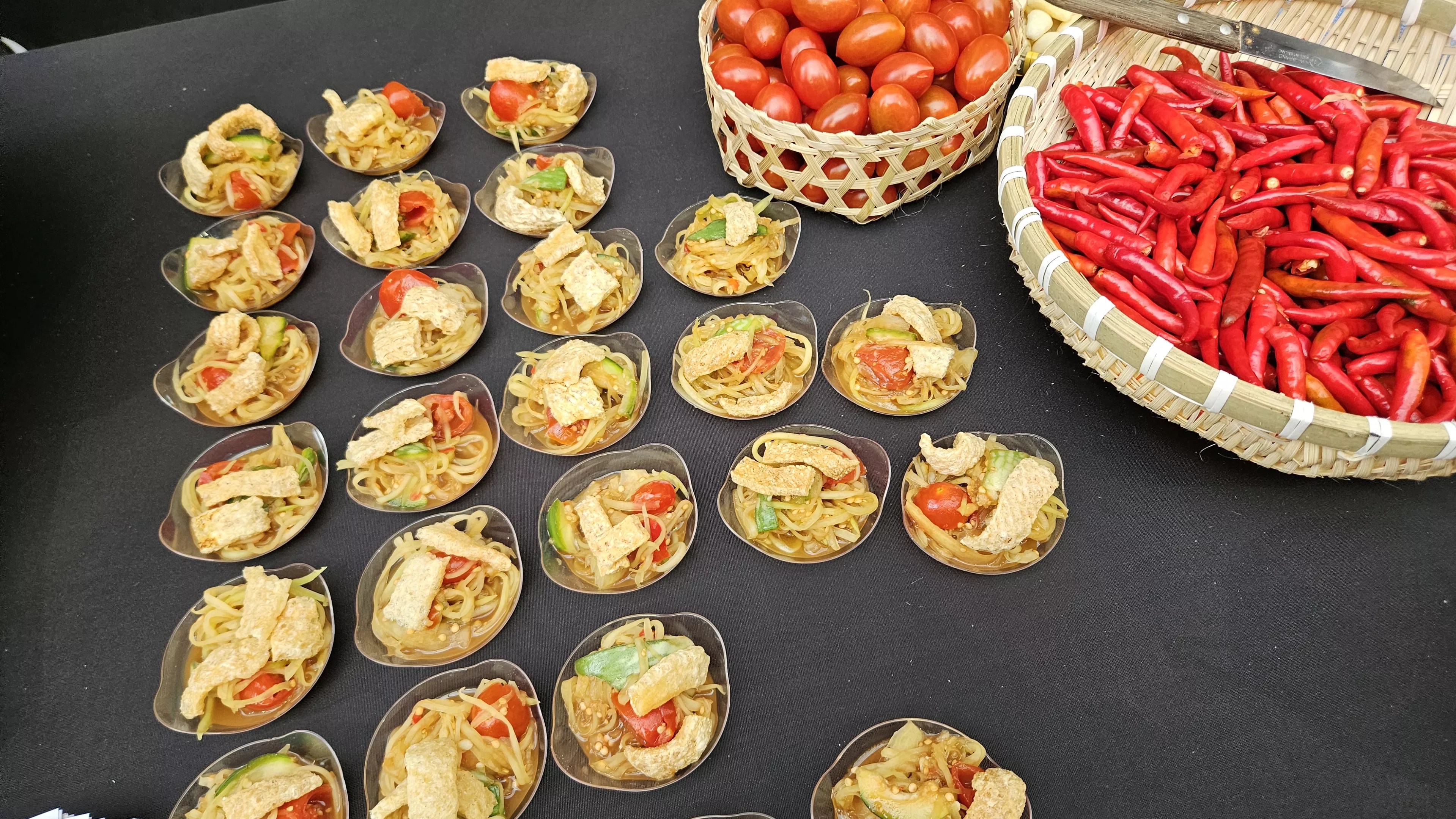 Throughout the event, Olive & Finch and many of the community groups offered samples of Asian cuisine, like banh mi sandwiches, dumplings and a umami-packed Lao salad that had fish sauce as the front-and-center flavor profile, something Asians would welcome but non-Asians might find a tad too pungent.