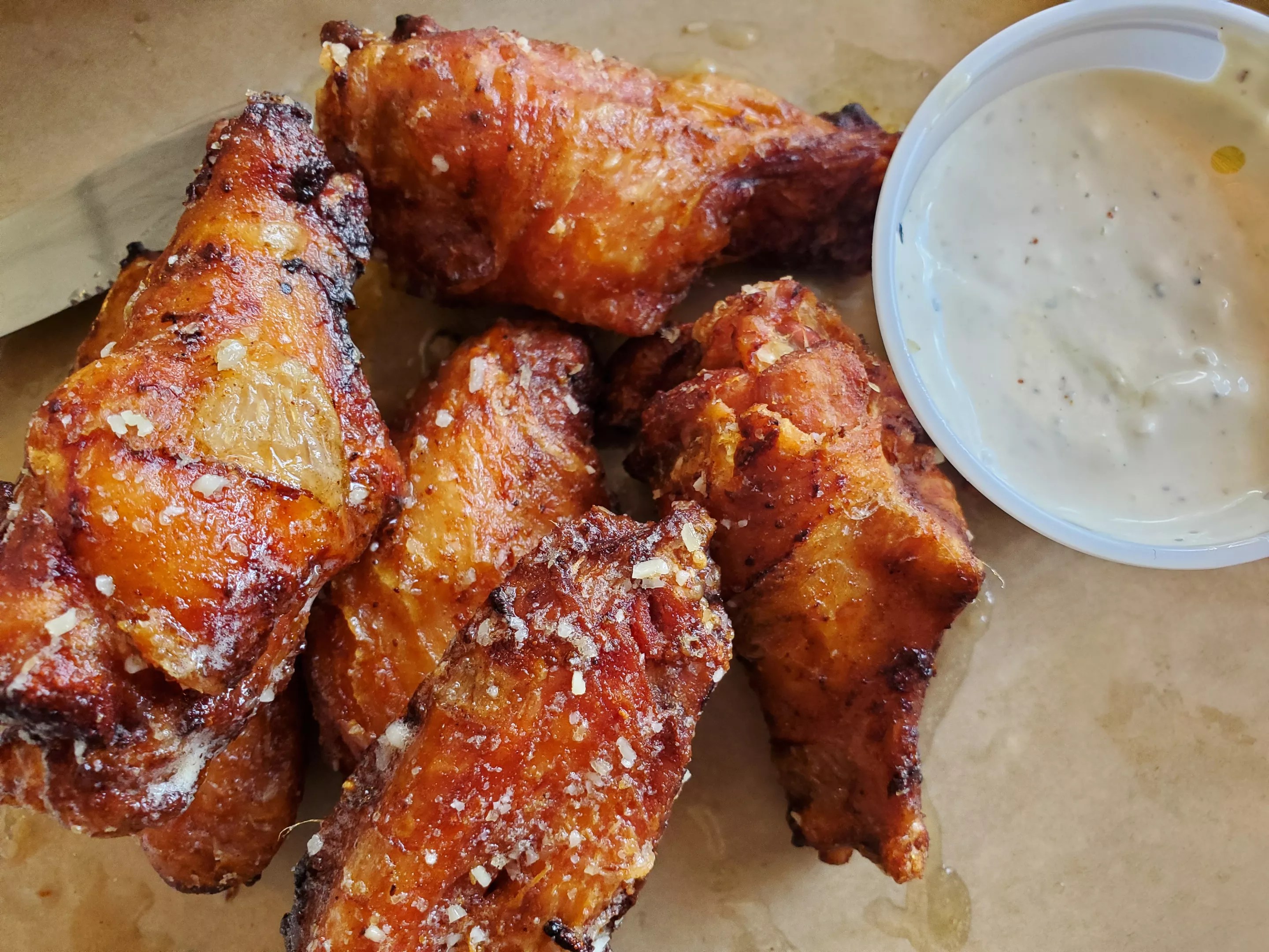 I had another winning Mexican meal at Chula. This spot at 3855 South Broadway in Englewood used to be a 4 G’s outpost, but after a divorce, owner Myrna Soltero rebranded it as Chula, named for her late dog. Just days after it debuted in January, though, a car crashed into the front of the building. It took over three months for Soltero to get permission to reopen, and the damage is still being repaired, but at least Chula is finally back in business. Not only does it currently have BOGO margaritas, but its food is on point. I particularly loved the big, extra-cheesy, crisp chiles rellenos smothered in Chula’s excellent green chile, available in regular with pork, extra hot or vegetarian versions. Smoked wings from Crossroads Pub & Grill. Molly Martin