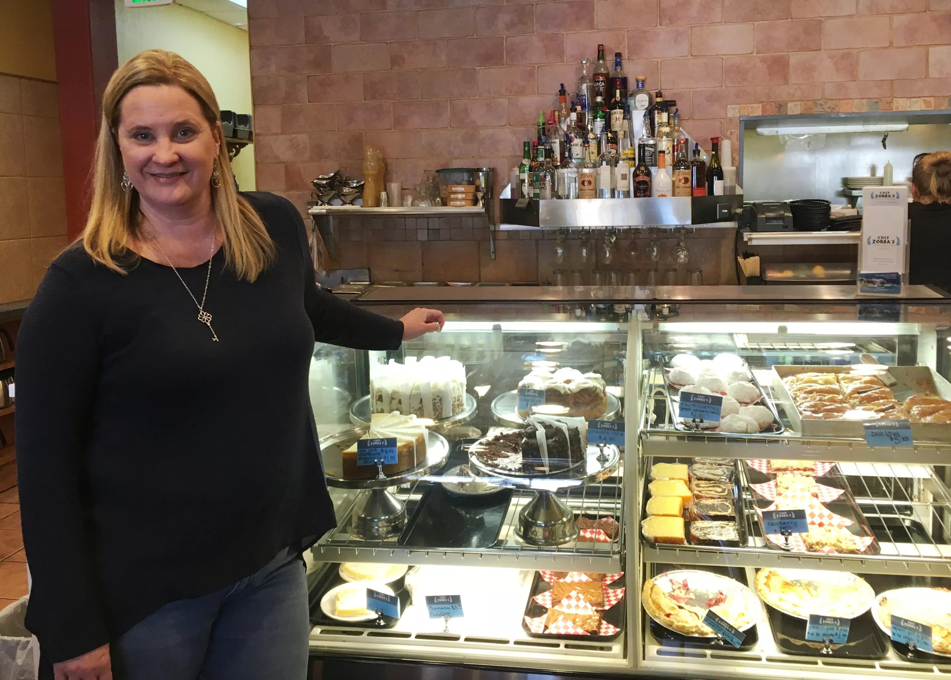 Karen LuKanic shows off the new pastry case at Chef Zorba’s.