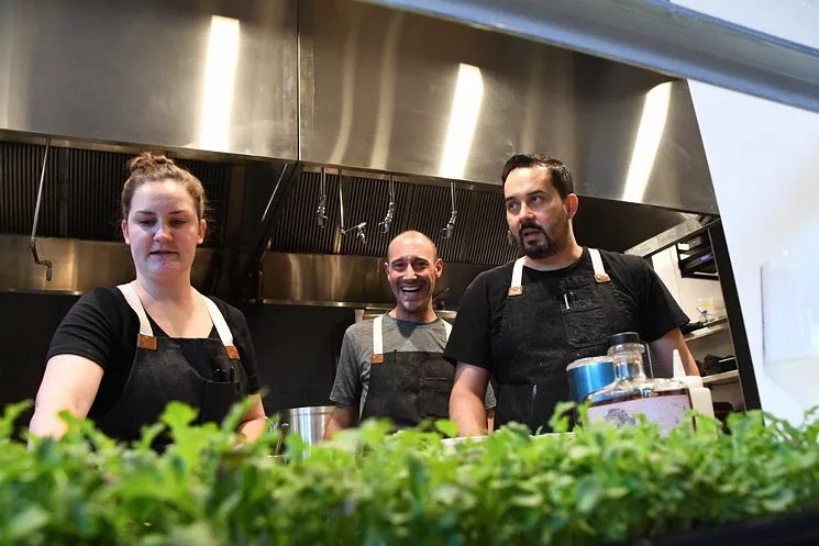 The Wolf’s Tailor earned two James Beard Award nominations this year, including Outstanding Pastry Chef for Jeb Breakell (center).